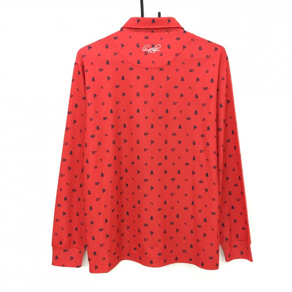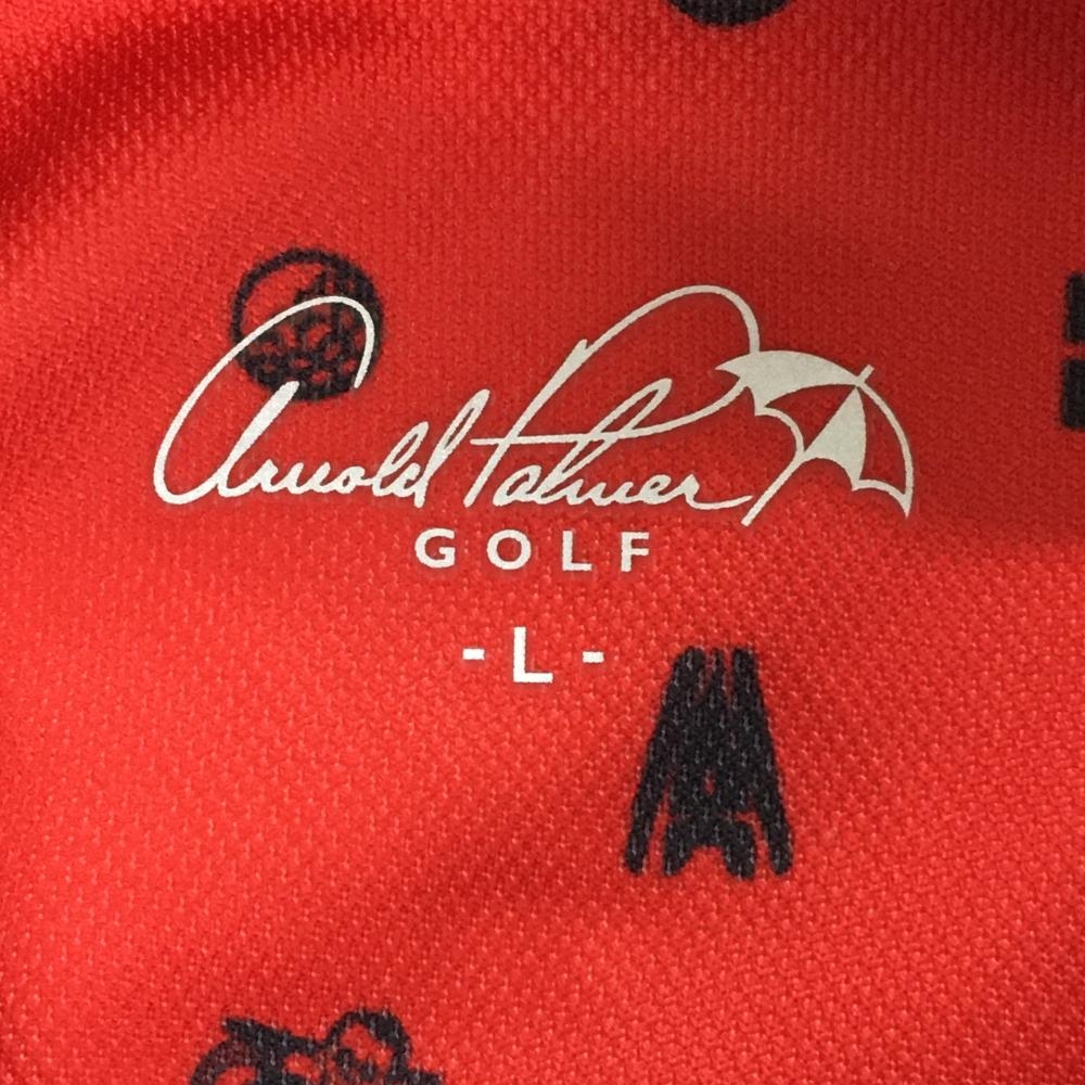 【美品】アーノルドパーマー 長袖ポロシャツ レッド×黒 総柄 ボタンダウン メンズ L ゴルフウェア Arnold Palmer