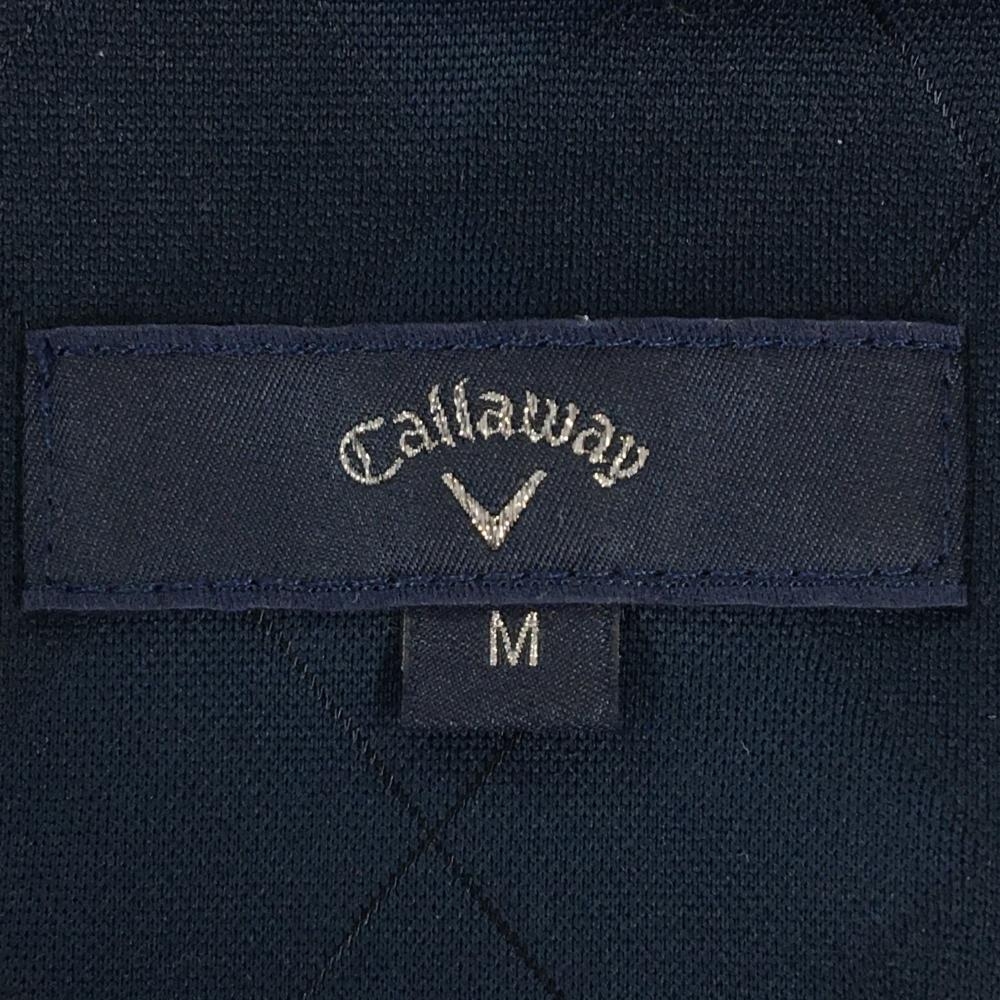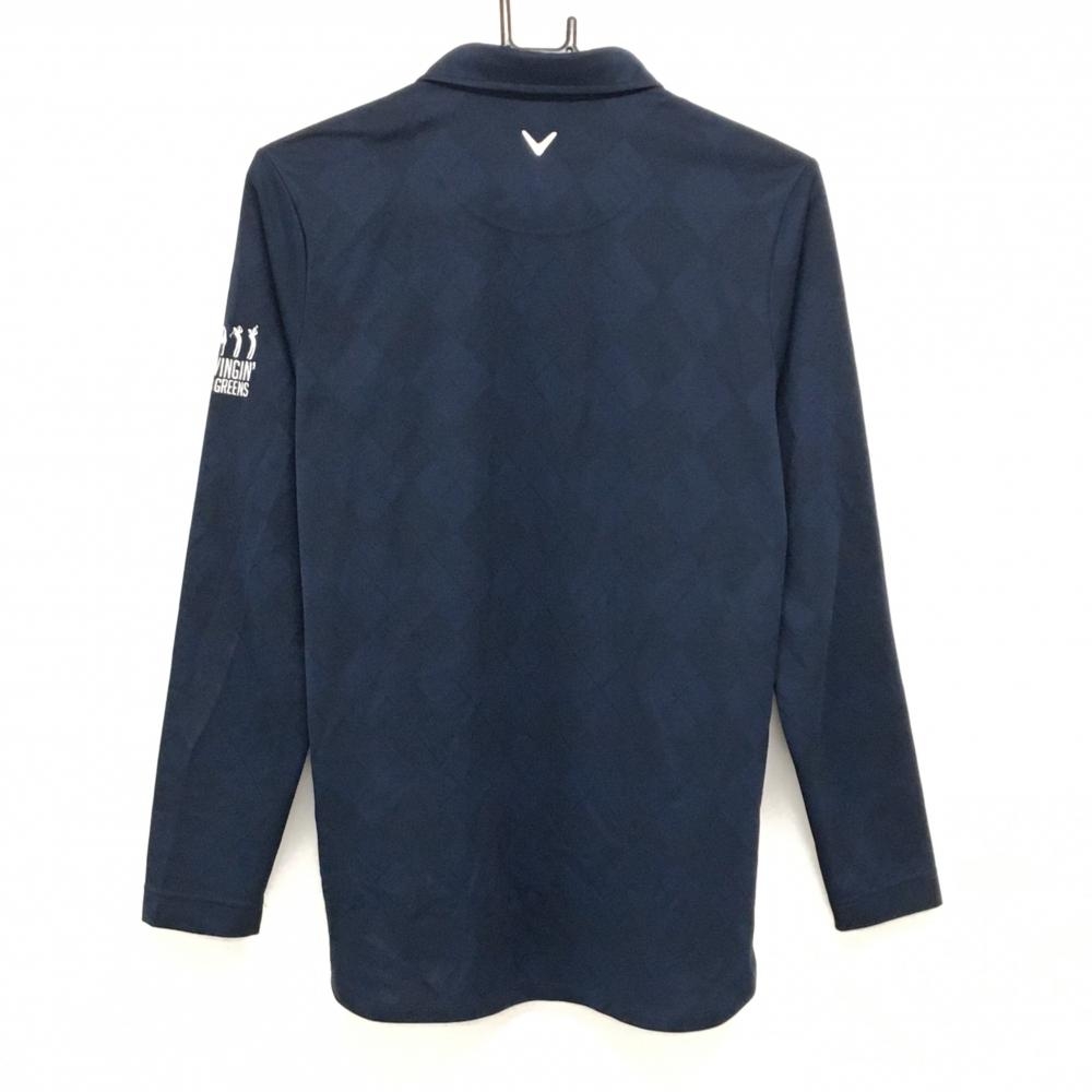 【美品】キャロウェイ 長袖ポロシャツ ネイビー×イエロー×白 前身頃総柄 メンズ M ゴルフウェア Callaway