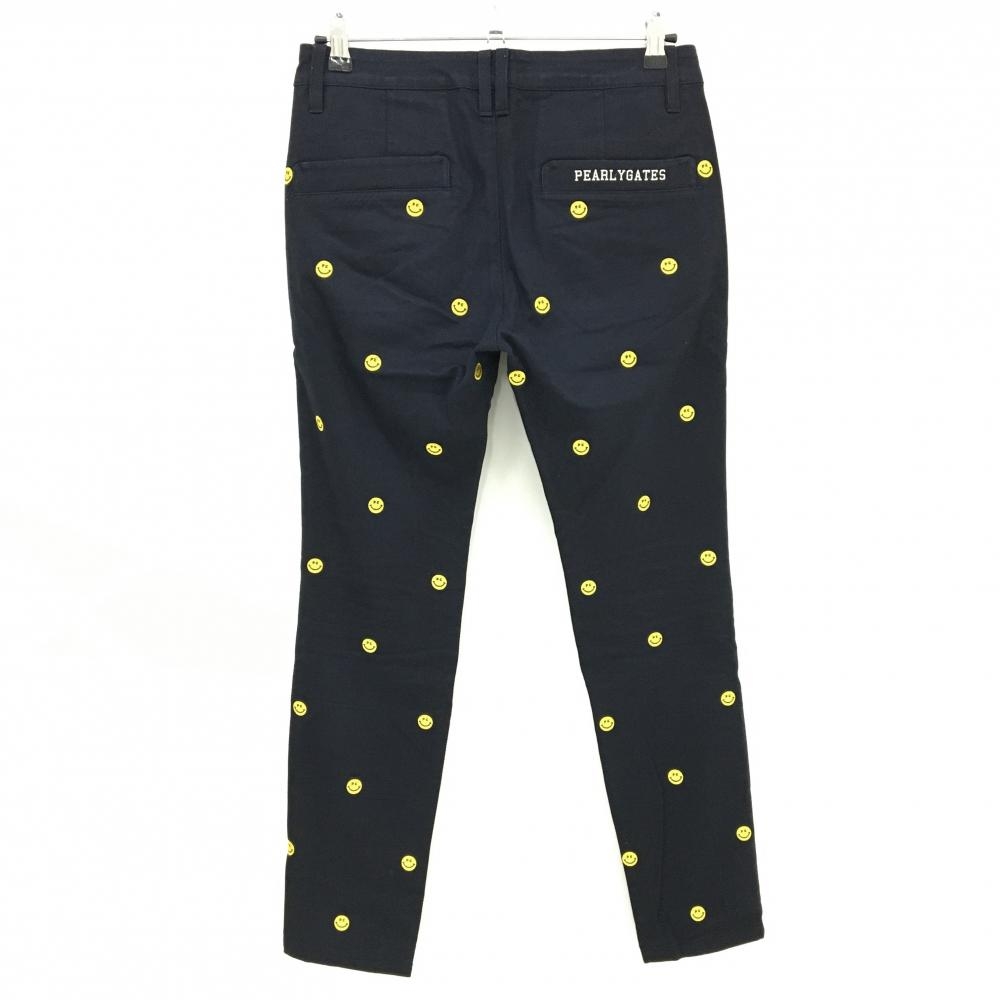パーリーゲイツ パンツ ネイビー×イエロー ニコちゃん総柄 スマイル ストレッチ レディース 1(M) ゴルフウェア PEARLY GATES