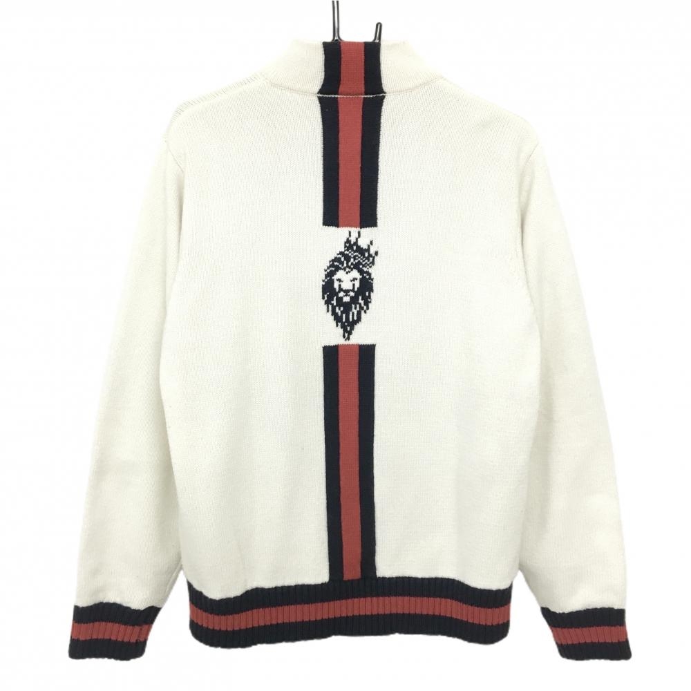 V12 ニットジャケット 白×ネイビー×レッド 星 ラムウール混 裏地付 メンズ M/M ゴルフウェア V12