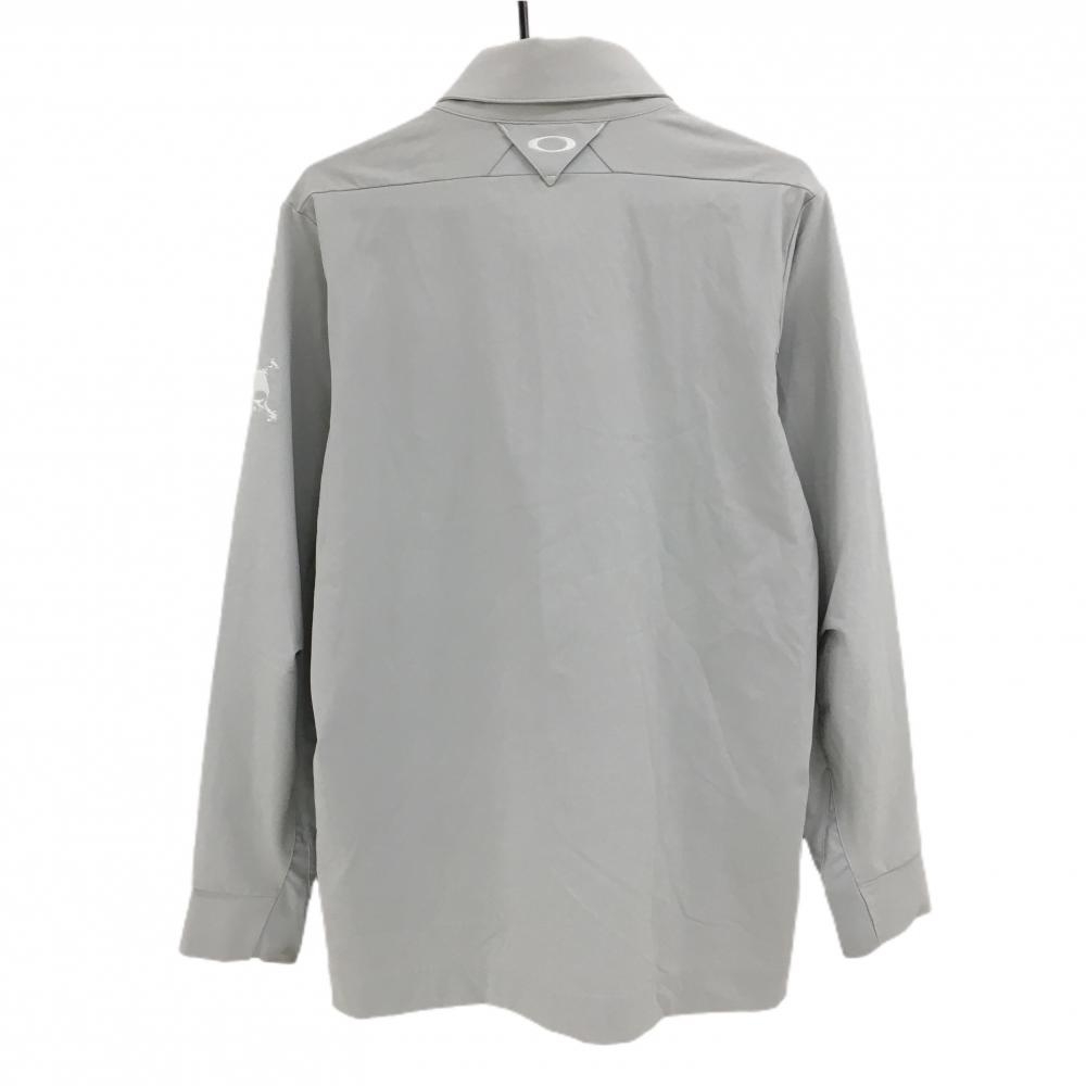 オークリー 長袖ポロシャツ ライトグレー ロゴ白 ハーフジップ ネック起毛 メンズ XL ゴルフウェア Oakley