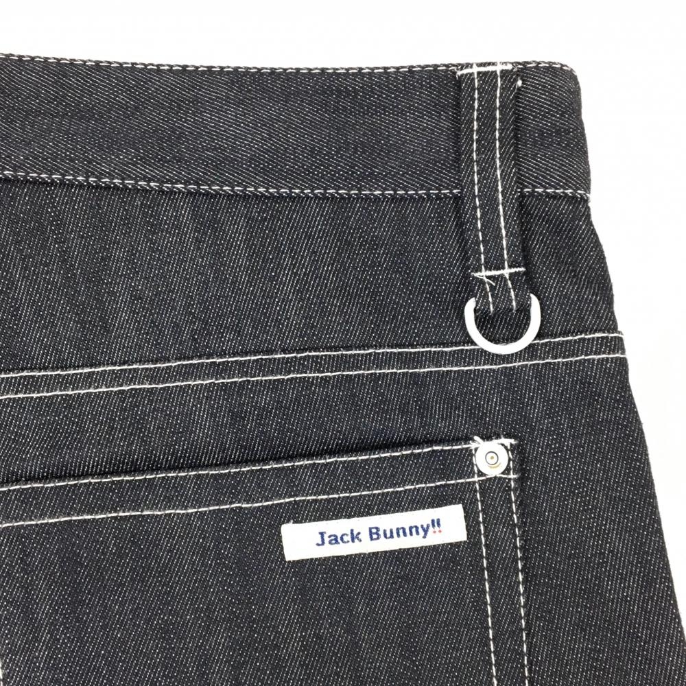【美品】ジャックバニー パンツ ネイビー デニム 白ステッチ メンズ 5(L) ゴルフウェア Jack Bunny
