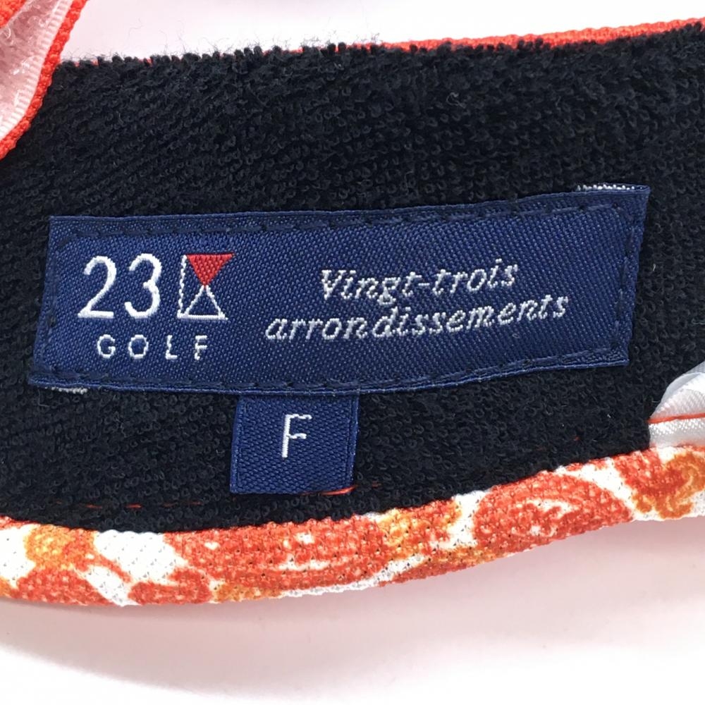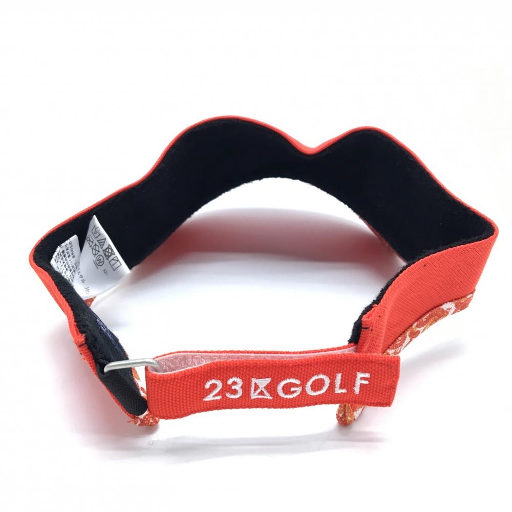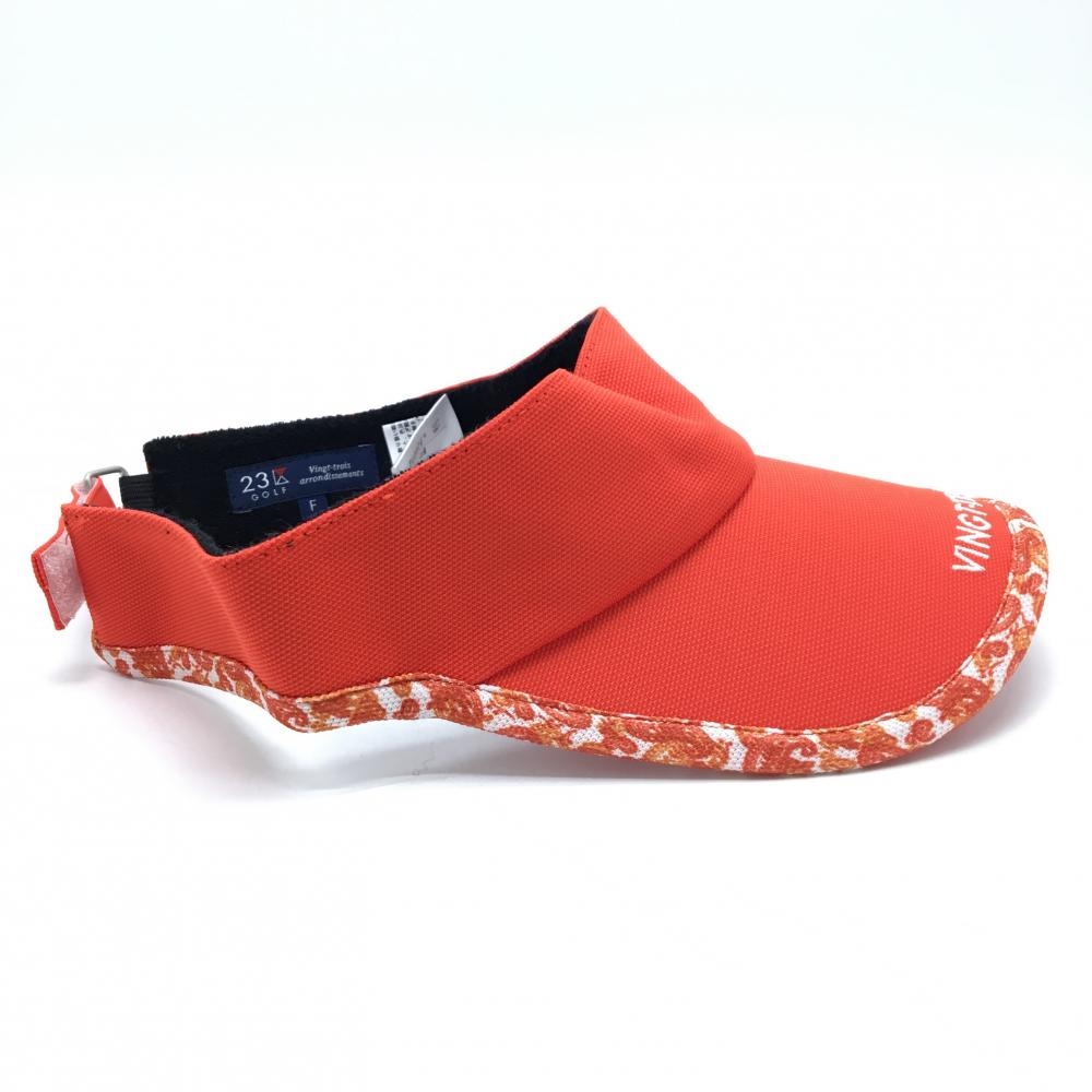 【超美品】23区ゴルフ サンバイザー オレンジ ふち柄 ロゴ刺しゅう F ゴルフウェア 23区