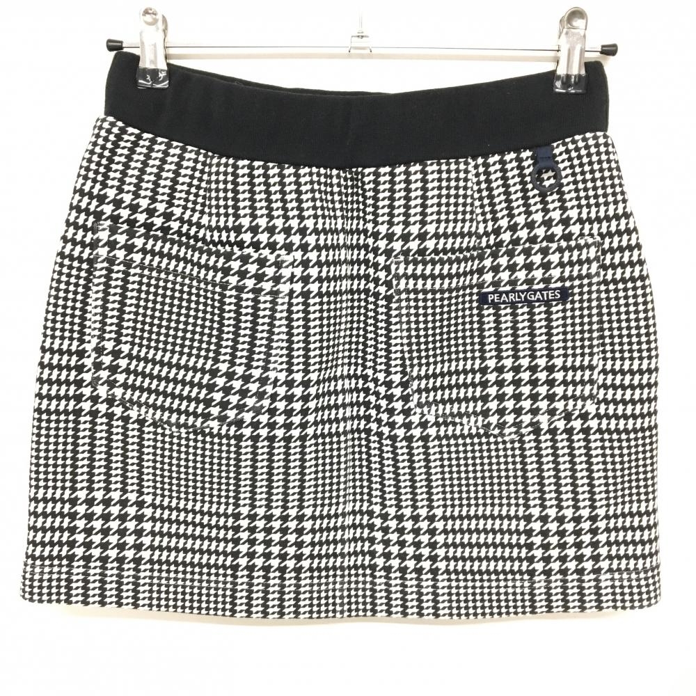 【美品】パーリーゲイツ スカート 黒×白 グレンチェック ウエストゴム&調節紐 レディース 0(S) ゴルフウェア PEARLY GATES