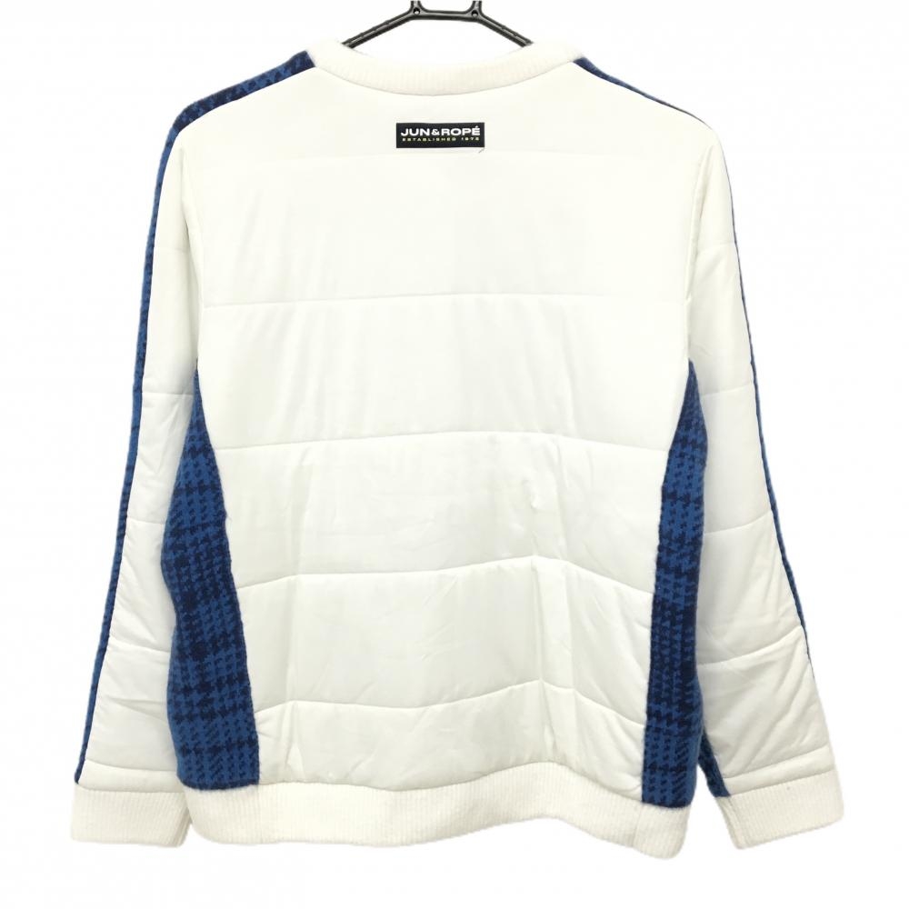 【超美品】ジュンアンドロペ 中綿異素材スニード ブルー×白 チェック 前ニット ブルゾン レディース L ゴルフウェア JUN&ROPE