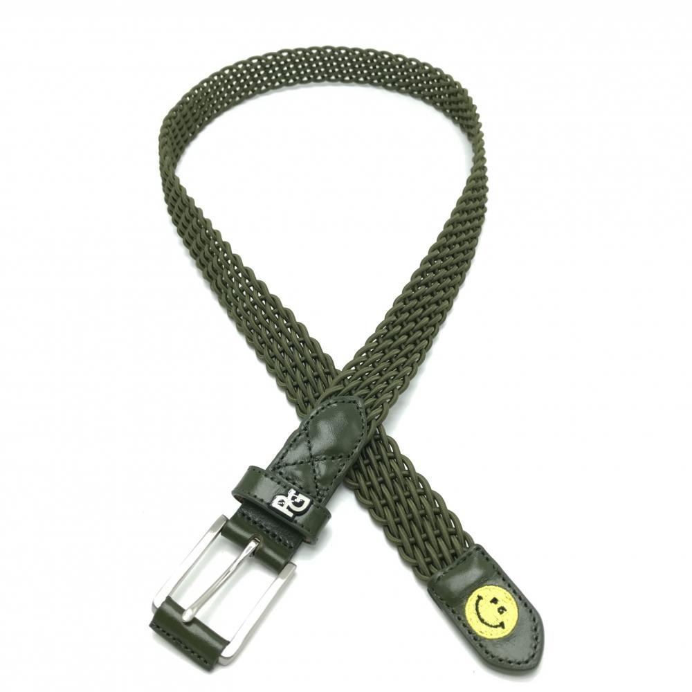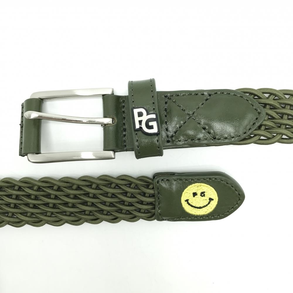 【超美品】パーリーゲイツ メッシュベルト グリーン 編み込み ニコちゃん スマイル メンズ ゴルフウェア PEARLY GATES