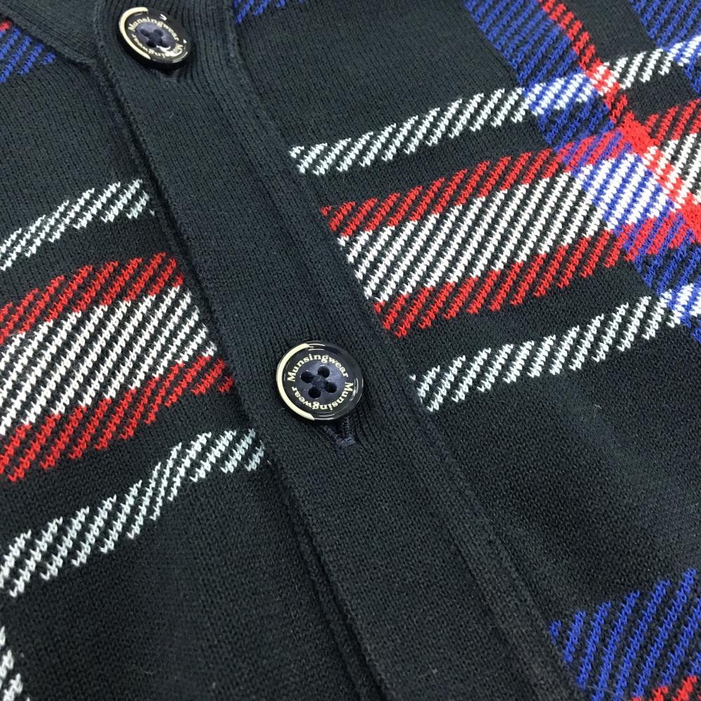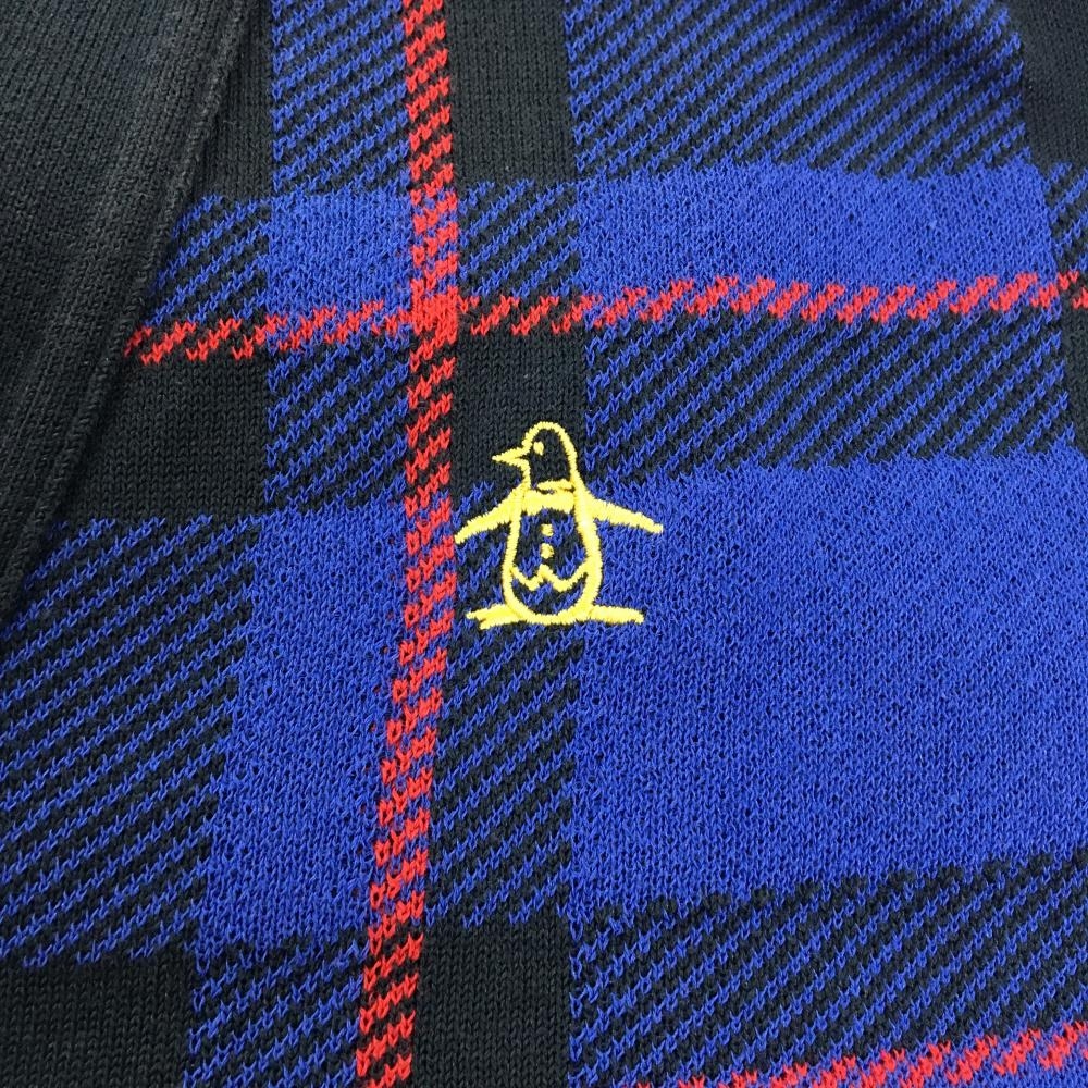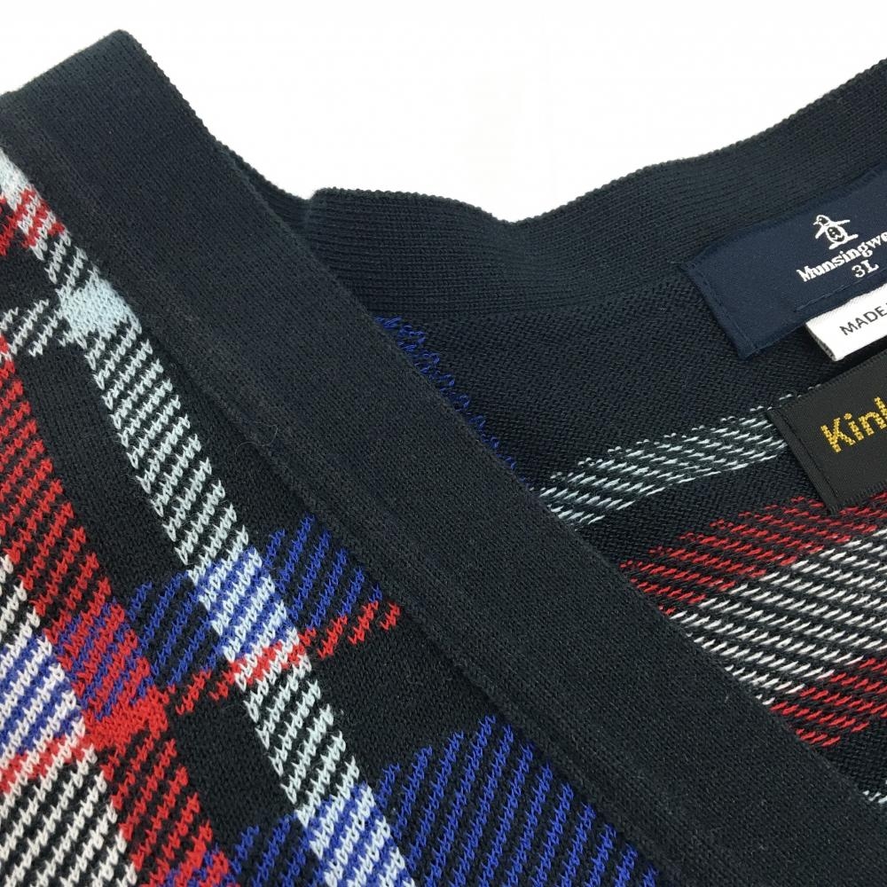 【美品】マンシングウェア ニットベスト 黒×ブルー系×レッド チェック メンズ 3L ゴルフウェア Munsingwear