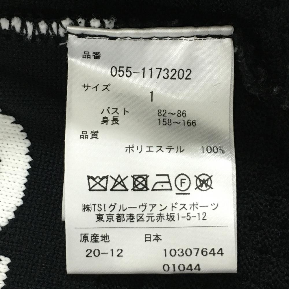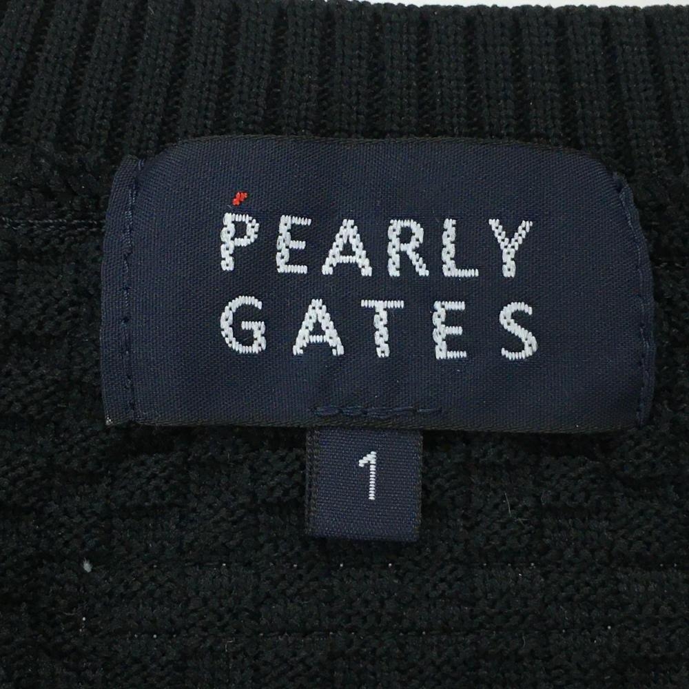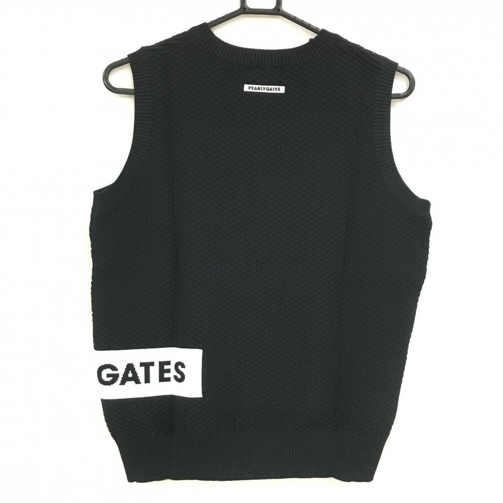 【超美品】パーリーゲイツ ニットベスト 黒×白 地模様 Vネック レディース 1(M) ゴルフウェア PEARLY GATES
