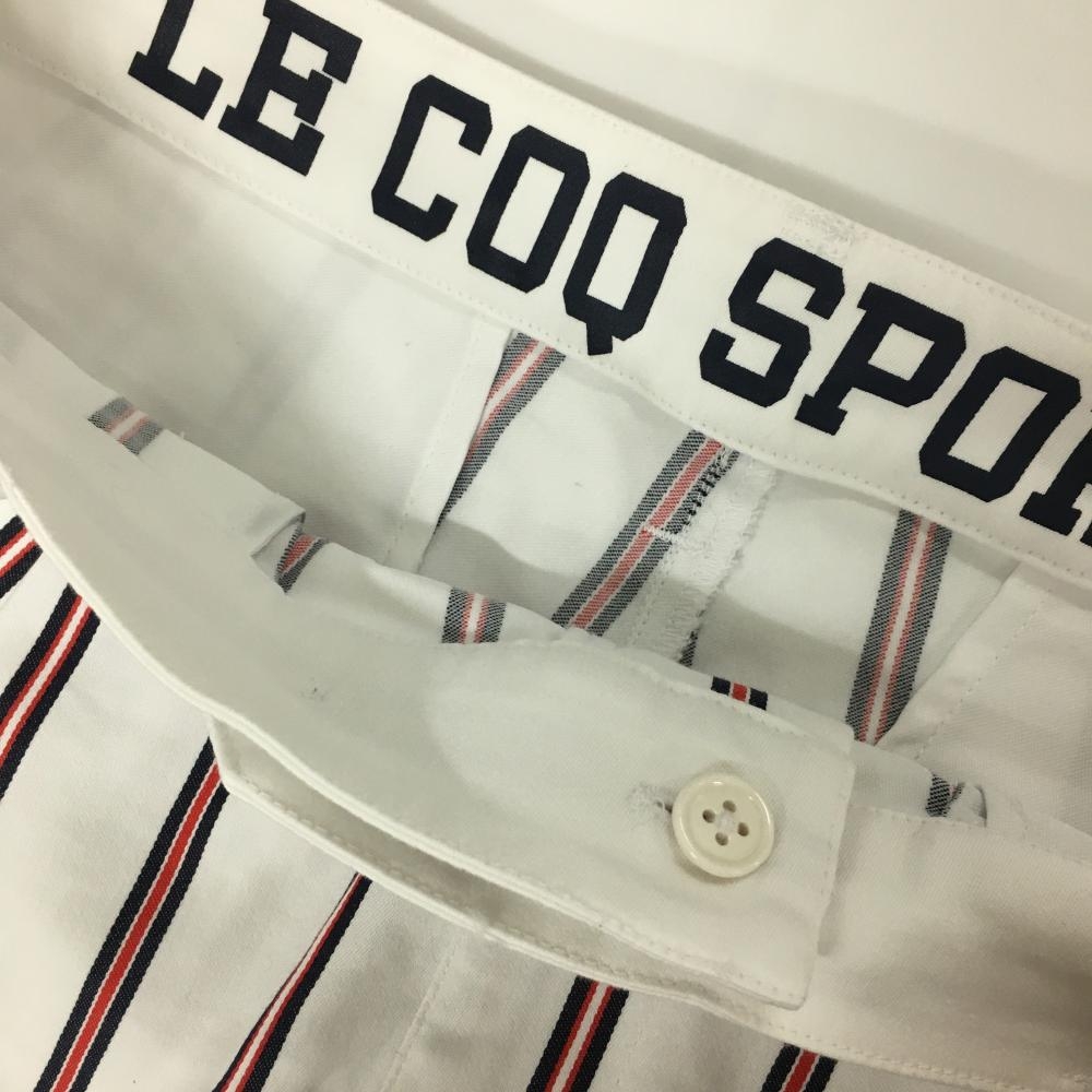 【美品】ルコックゴルフ ショートパンツ 白×ネイビー×レッド ストライプ ロゴ刺しゅう レディース 11 ゴルフウェア le coq sportif