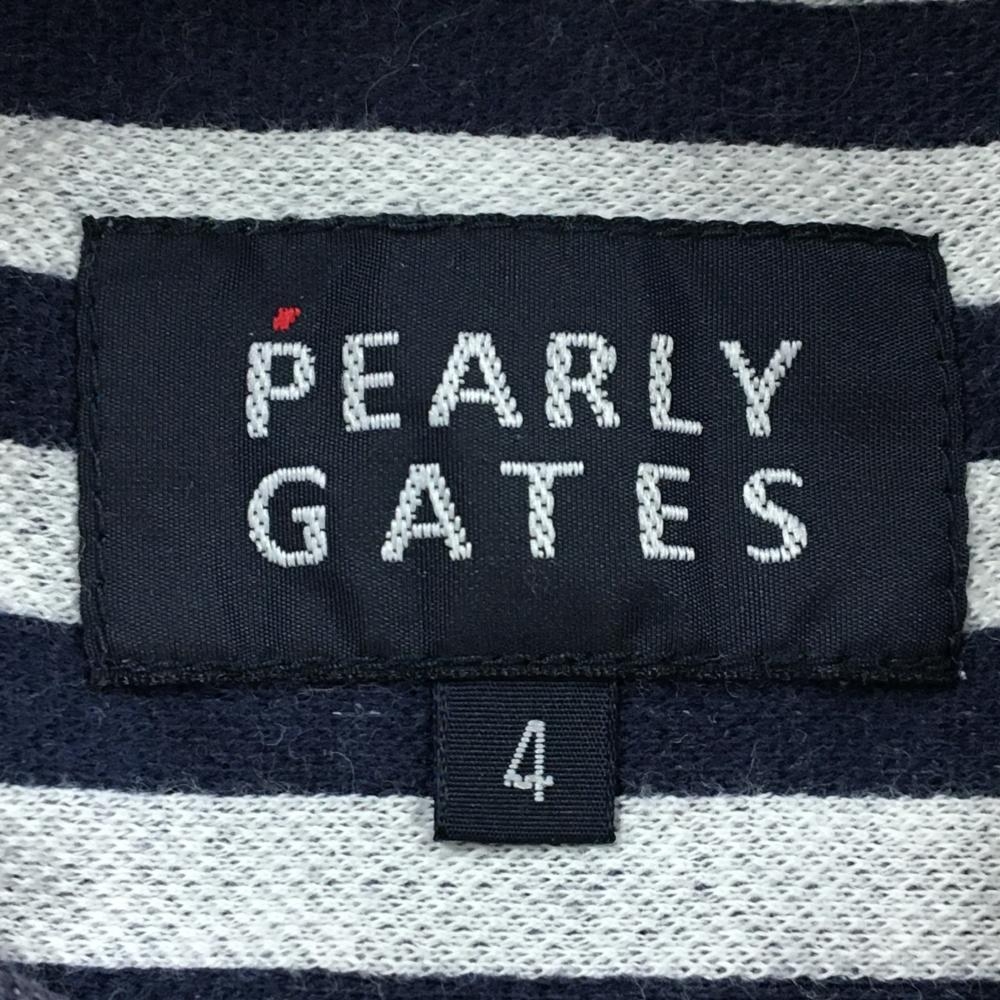 パーリーゲイツ 長袖シャツ 白×ネイビー ストライプ ボタンダウン 綿100% メンズ 4(M) ゴルフウェア PEARLY GATES