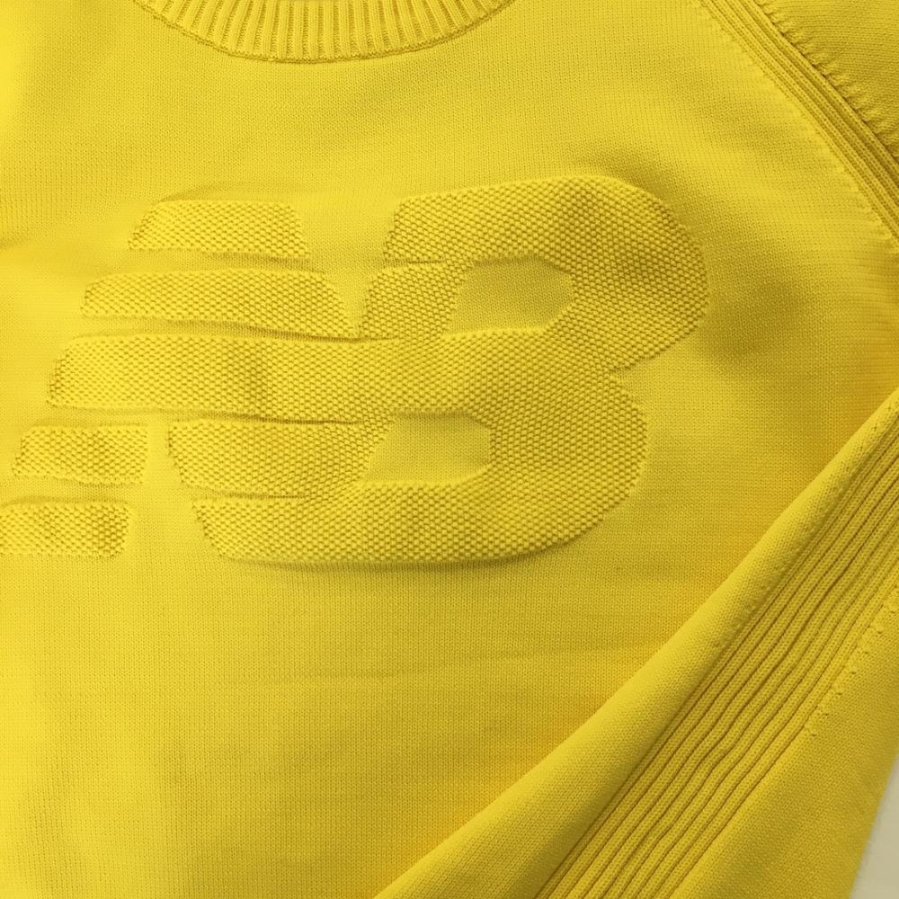 【美品】ニューバランスゴルフ セーター イエロー 胸ロゴ ニット レディース 2(L) ゴルフウェア New Balance