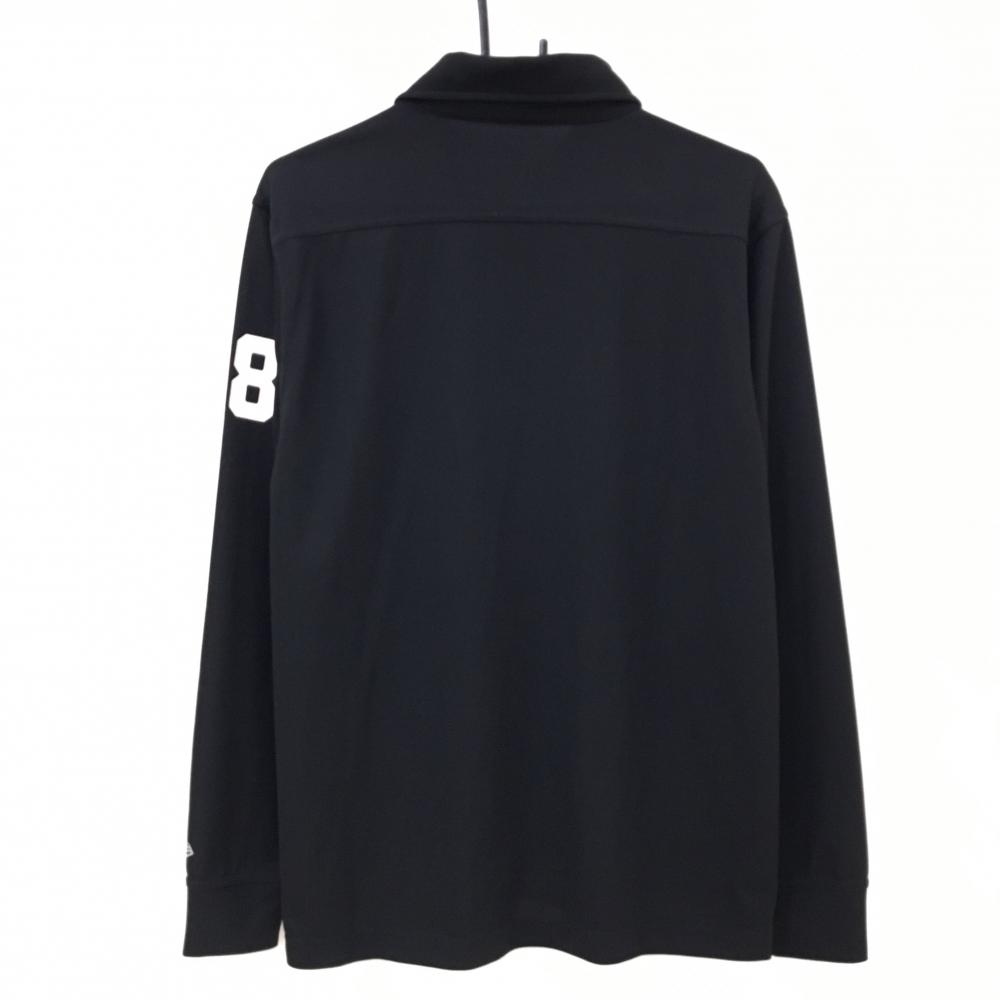 【超美品】ニューエラ 長袖ポロシャツ 黒 袖ナンバープリント 胸ポケット ボタンダウン メンズ MEDIUM ゴルフウェア New Era