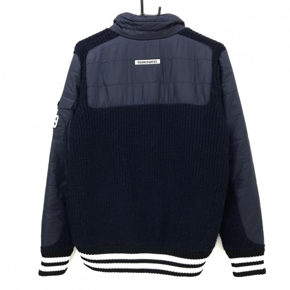 【美品】パーリーゲイツ 中綿ニットジャケット ネイビー×白 羊毛混 メンズ 5(L) ゴルフウェア PEARLY GATES