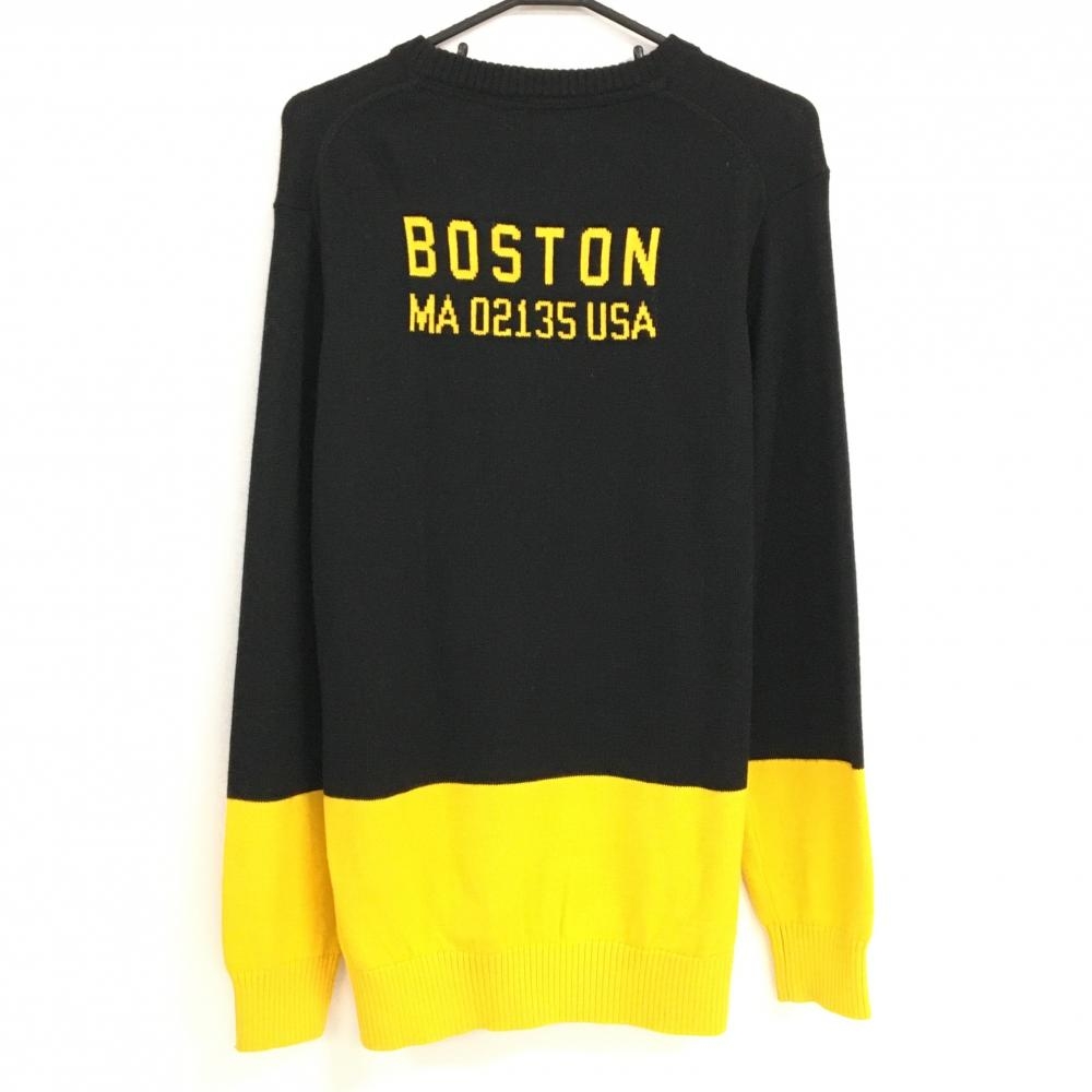 【超美品】ニューバランスゴルフ セーター 黒×イエロー ウール混 ニット メンズ 7(2XL) ゴルフウェア 大きいサイズ New Balance