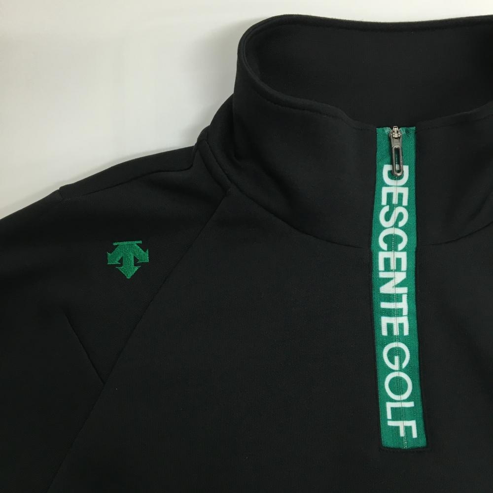 【美品】デサントゴルフ 長袖ハイネックシャツ 黒×グリーン ハーフジップロゴ 中田英寿 メンズ O ゴルフウェア DESCENTE