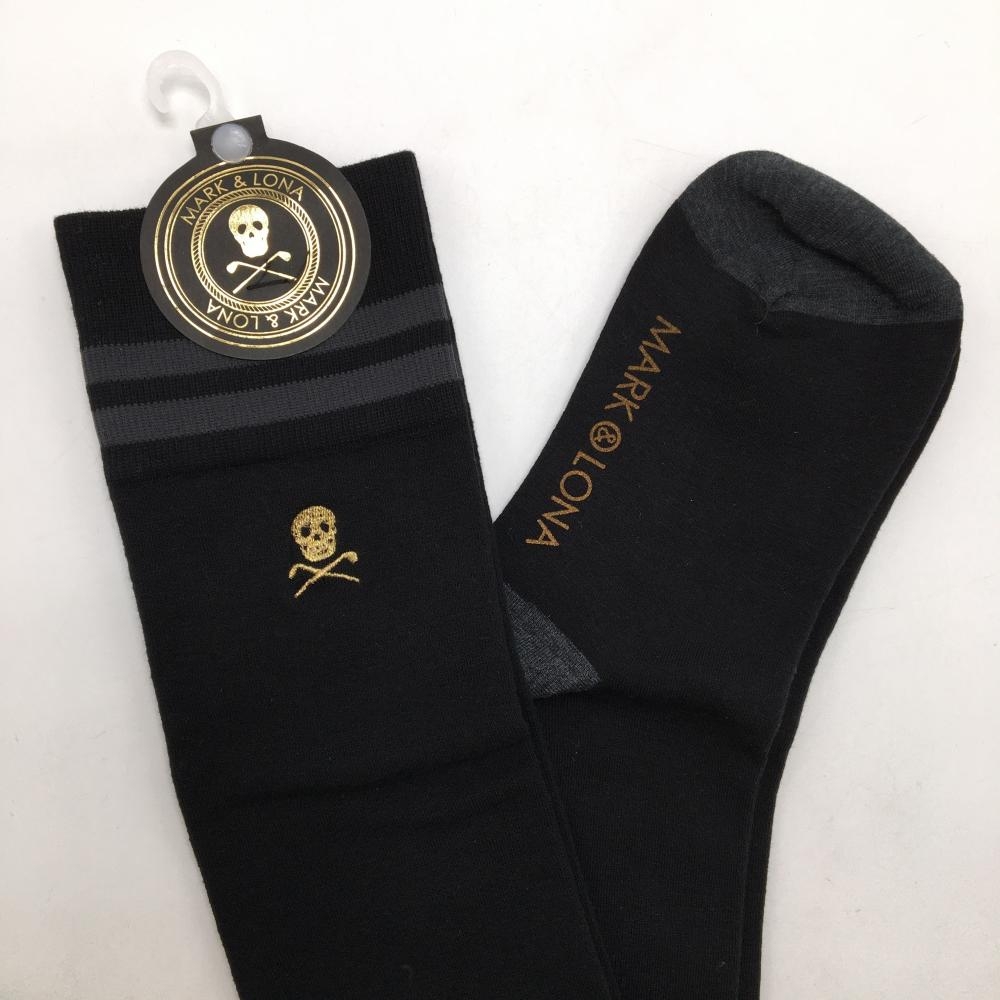 【新品】マークアンドロナ ニーハイソックス 黒×グレー スカル レディース 23-25cm ゴルフウェア MARK&LONA