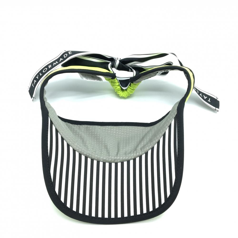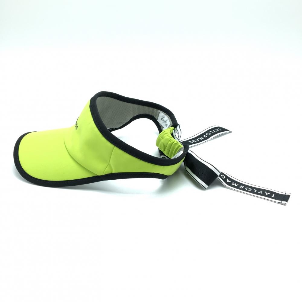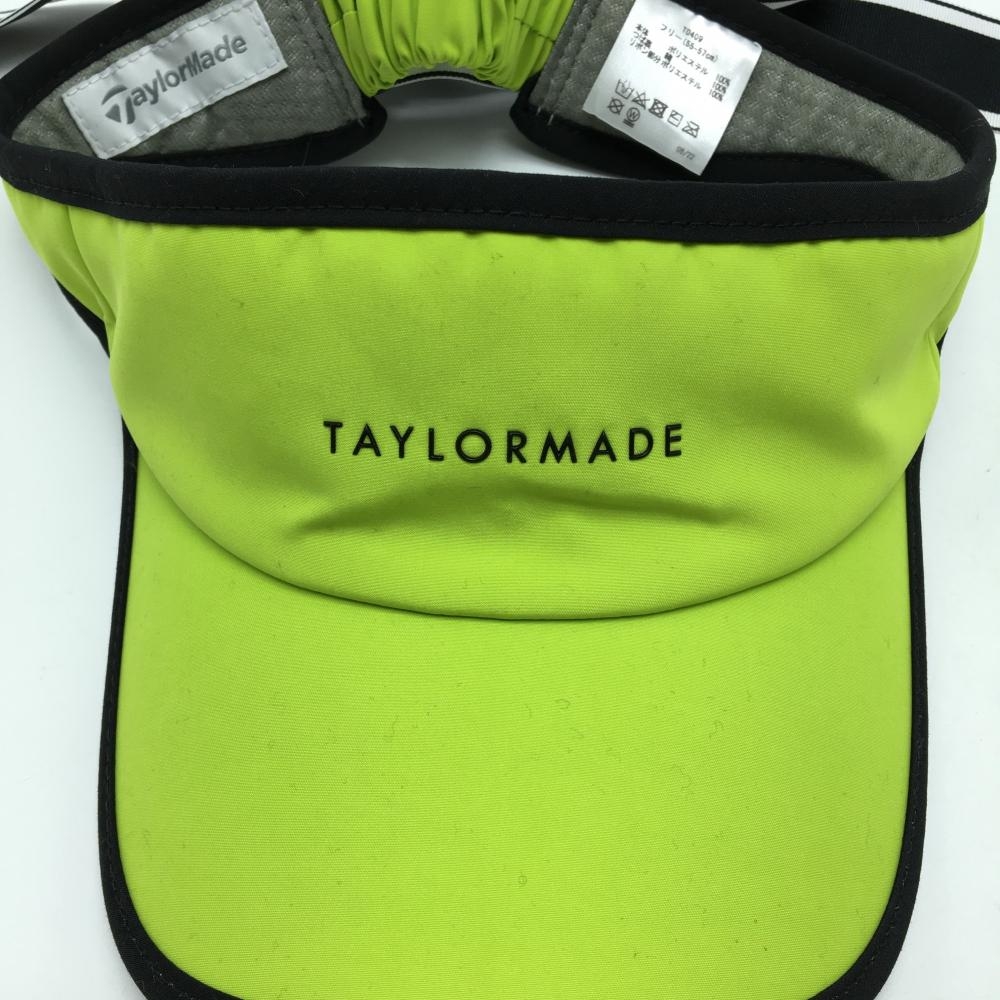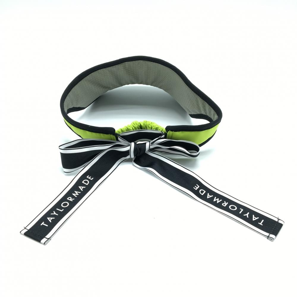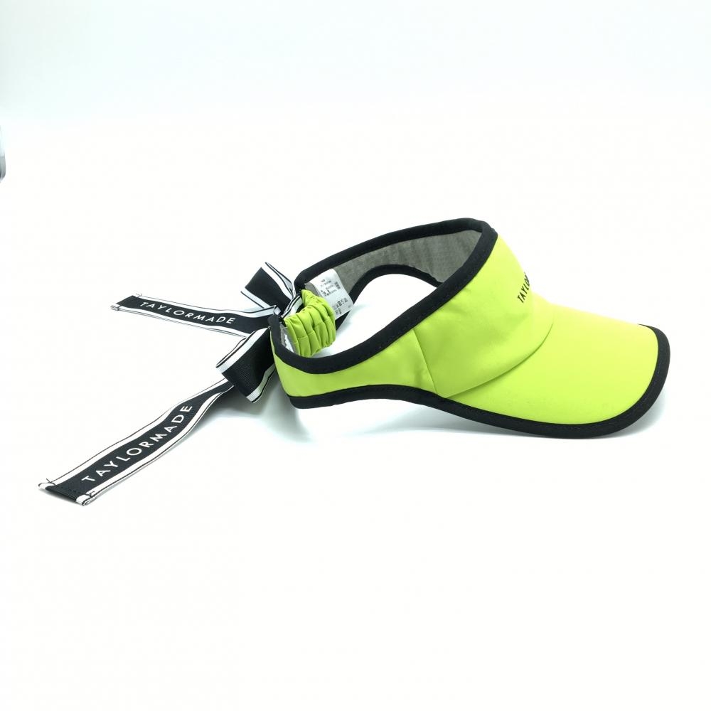【美品】テーラーメイド サンバイザー 蛍光イエロー×黒 ロゴ リボン着脱可 レディース フリー(55-57cm) ゴルフウェア TaylorMade