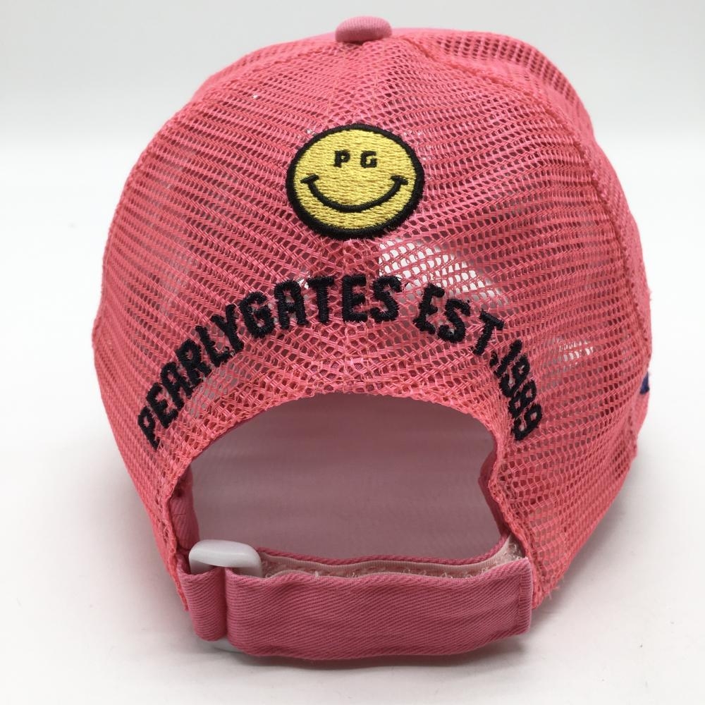 パーリーゲイツ メッシュキャップ ピンク×白 ニコちゃん スマイル 立体ロゴ FR ゴルフウェア PEARLY GATES