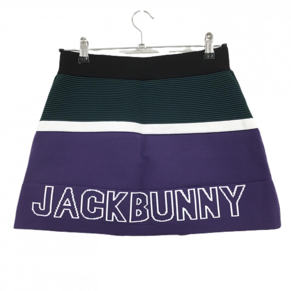 【超美品】ジャックバニー ニットスカート パープル×グリーン 裾ロゴ 内側インナーパンツ レディース 1(M) ゴルフウェア Jack Bunny
