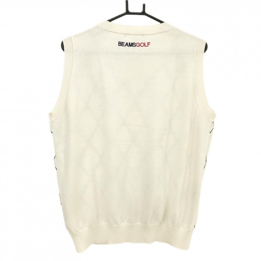 【超美品】ビームスゴルフ ニットベスト アイボリー×ダークネイビー 前面ダイヤ柄編み カシミヤ混 メンズ XL ゴルフウェア BEAMS GOLF