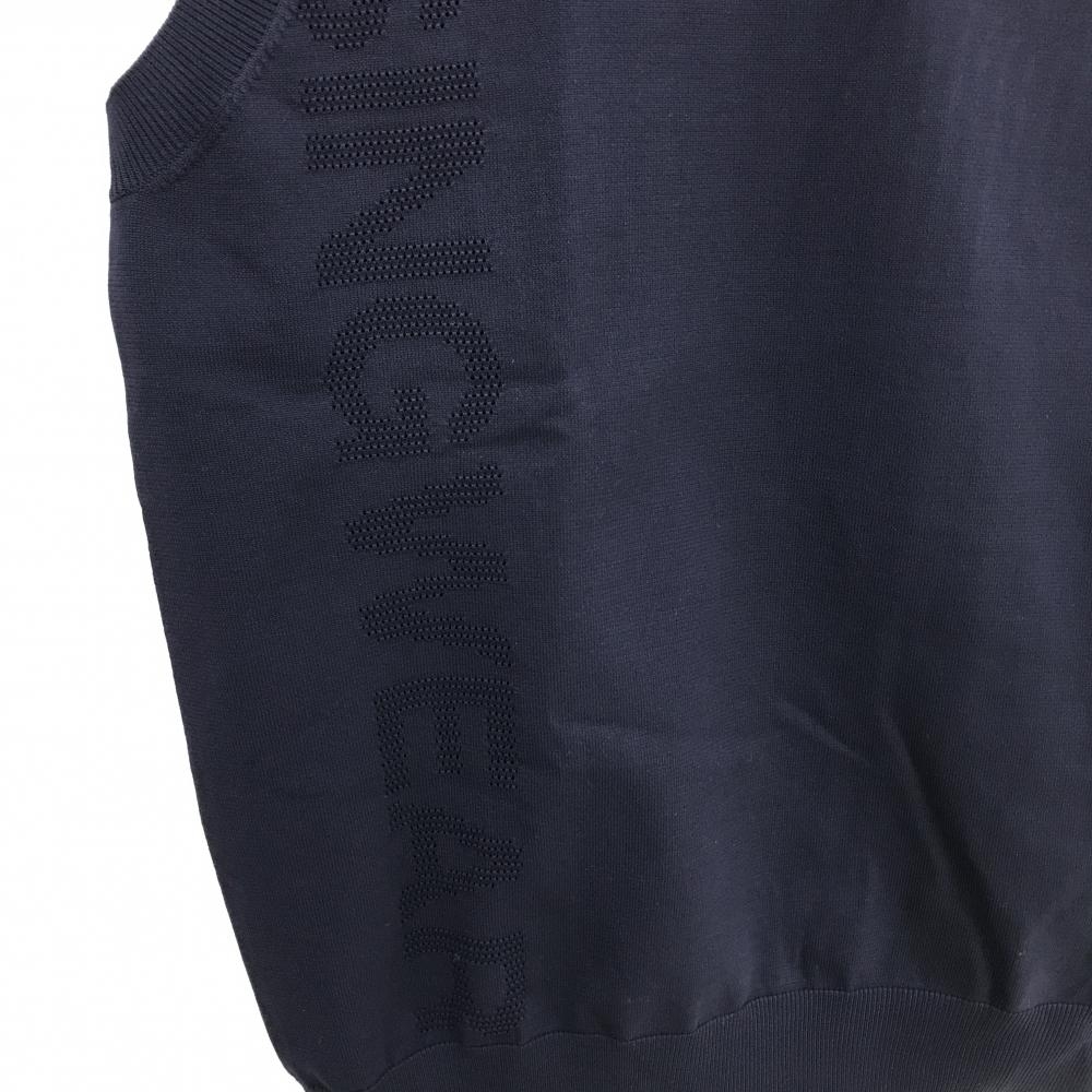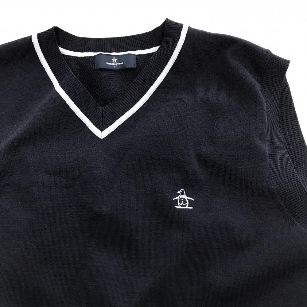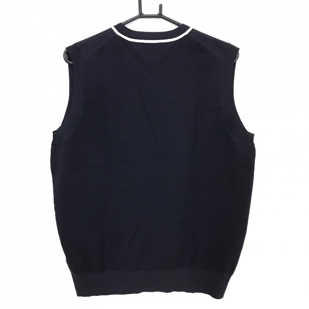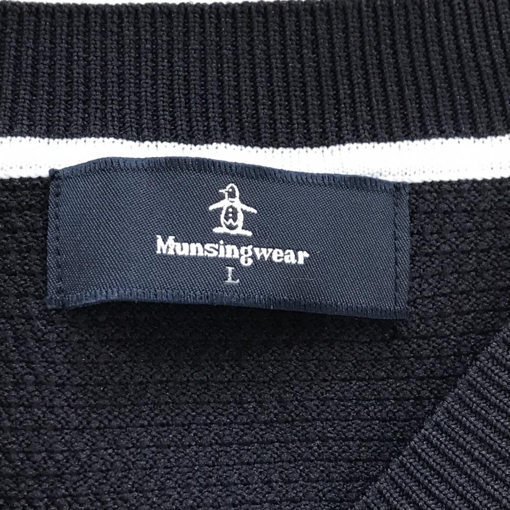 【超美品】マンシングウェア ニットベスト ネイビー×白 ロゴ透かし編み Vネック メンズ L ゴルフウェア Munsingwear