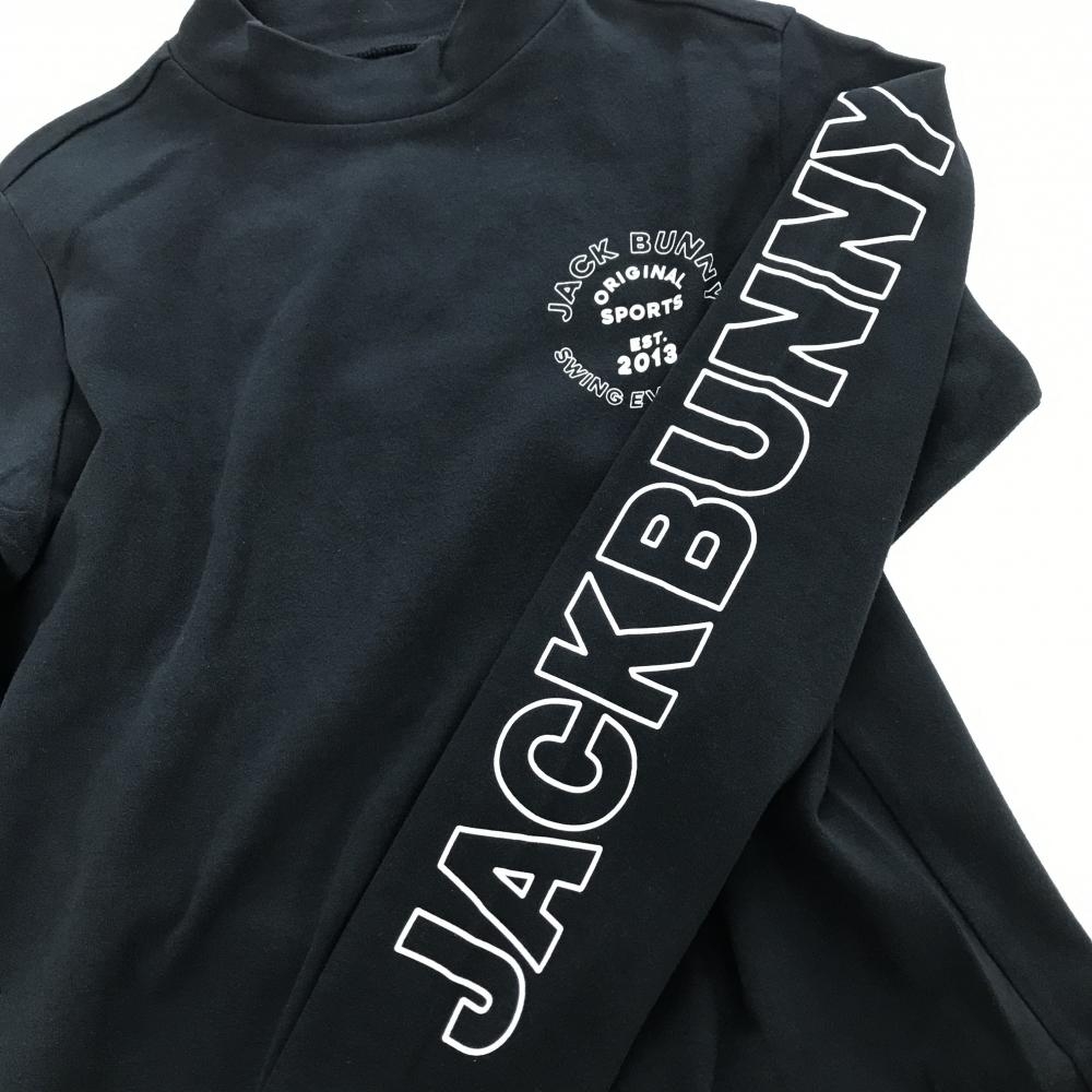 ジャックバニー 長袖ハイネックシャツ 黒×白 袖ロゴプリント レディース 1(M) ゴルフウェア Jack Bunny