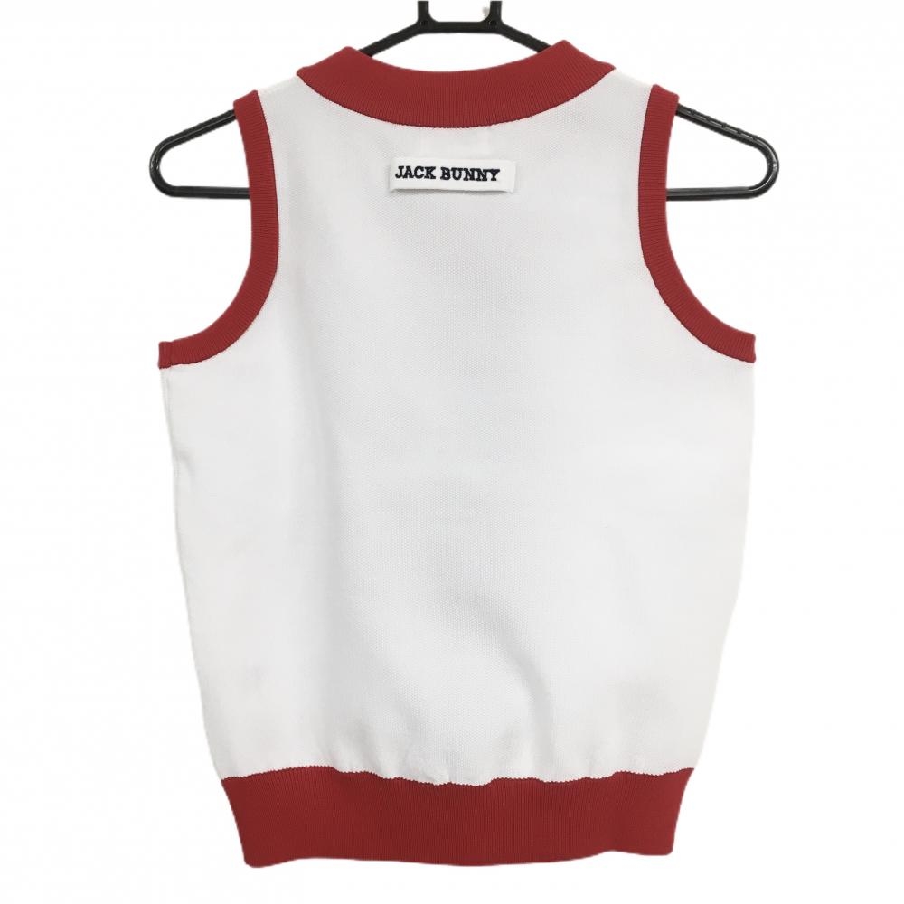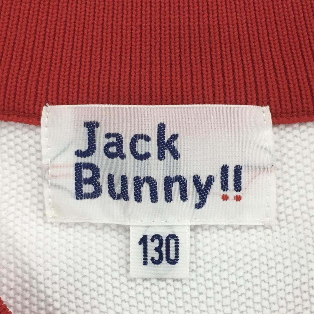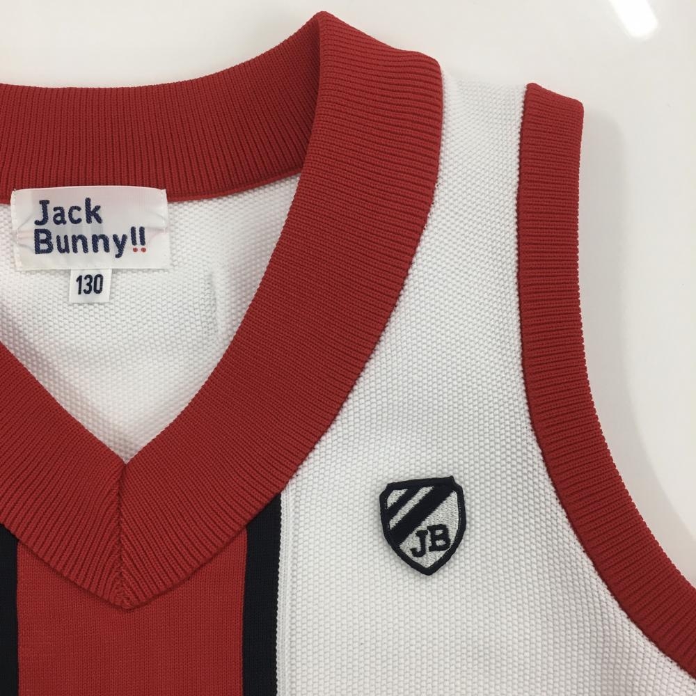 【超美品】ジャックバニー ニットベスト 白×レッド Vネック ジュニア・キッズ 130(SS) ゴルフウェア Jack Bunny