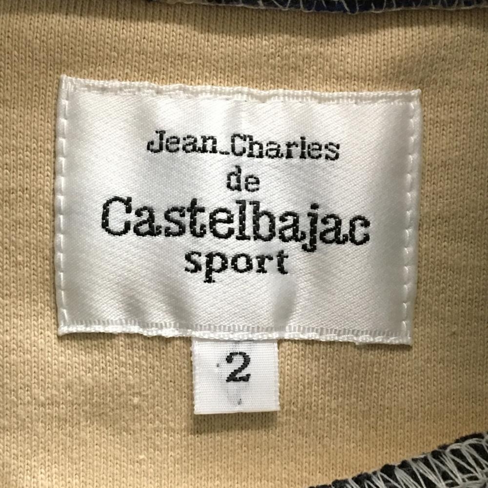 【美品】カステルバジャックスポーツ 長袖タートルネックシャツ 白×黒×イエロー系 フロント レディース 2(M) ゴルフウェア CASTELBAJAC
