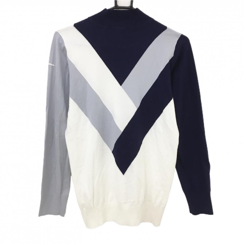 テーラーメイド ハイネックセーター ネイビー×白 レーヨン混 ニット レディース L ゴルフウェア TaylorMade