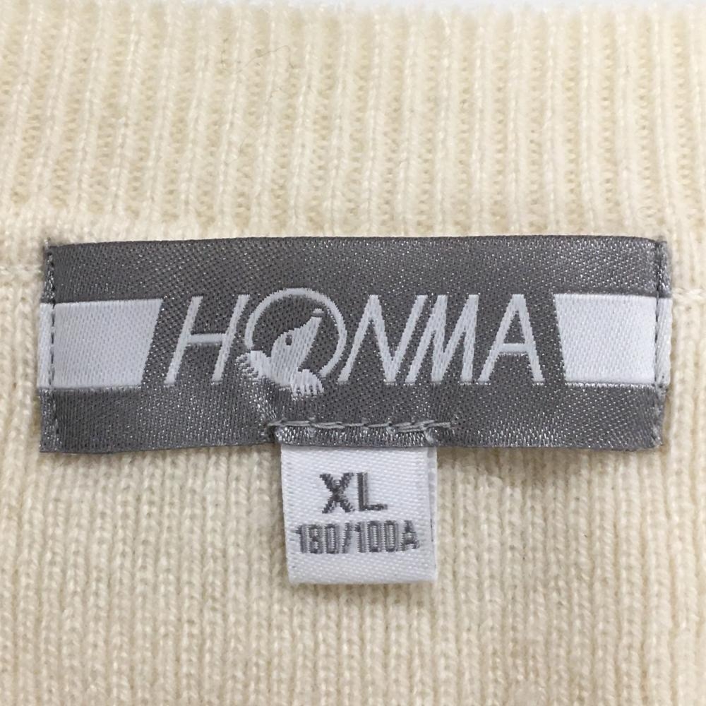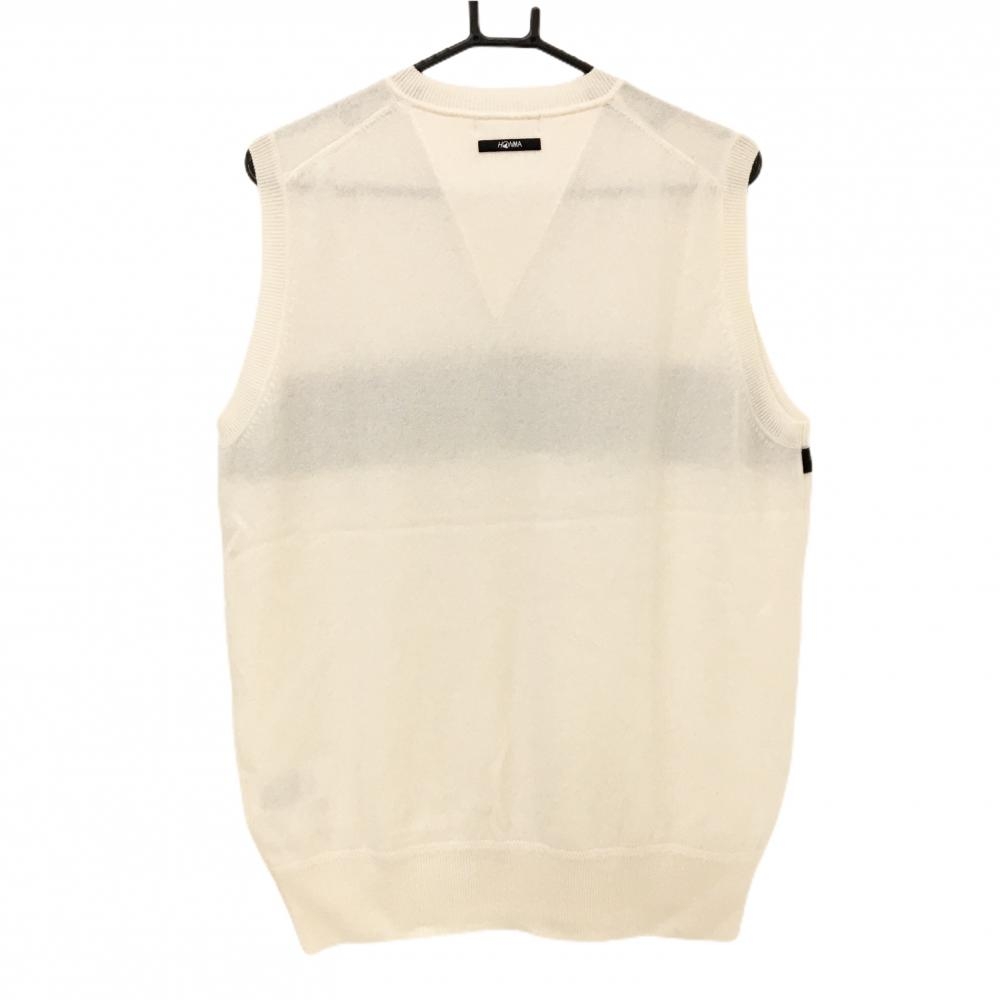 【超美品】ホンマ ニットベスト アイボリー×黒 カシミヤ100% Vネック メンズ XL ゴルフウェア HONMA