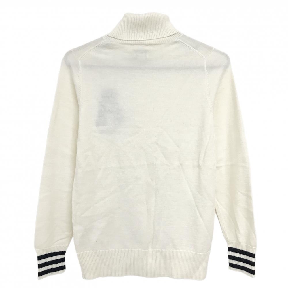 【超美品】アディダス タートルネックセーター 白×ネイビー ニット ウール混 袖口3ライン レディース L/G ゴルフウェア adidas