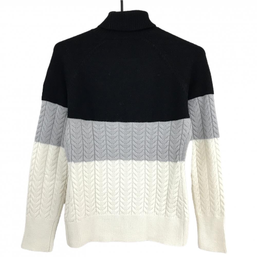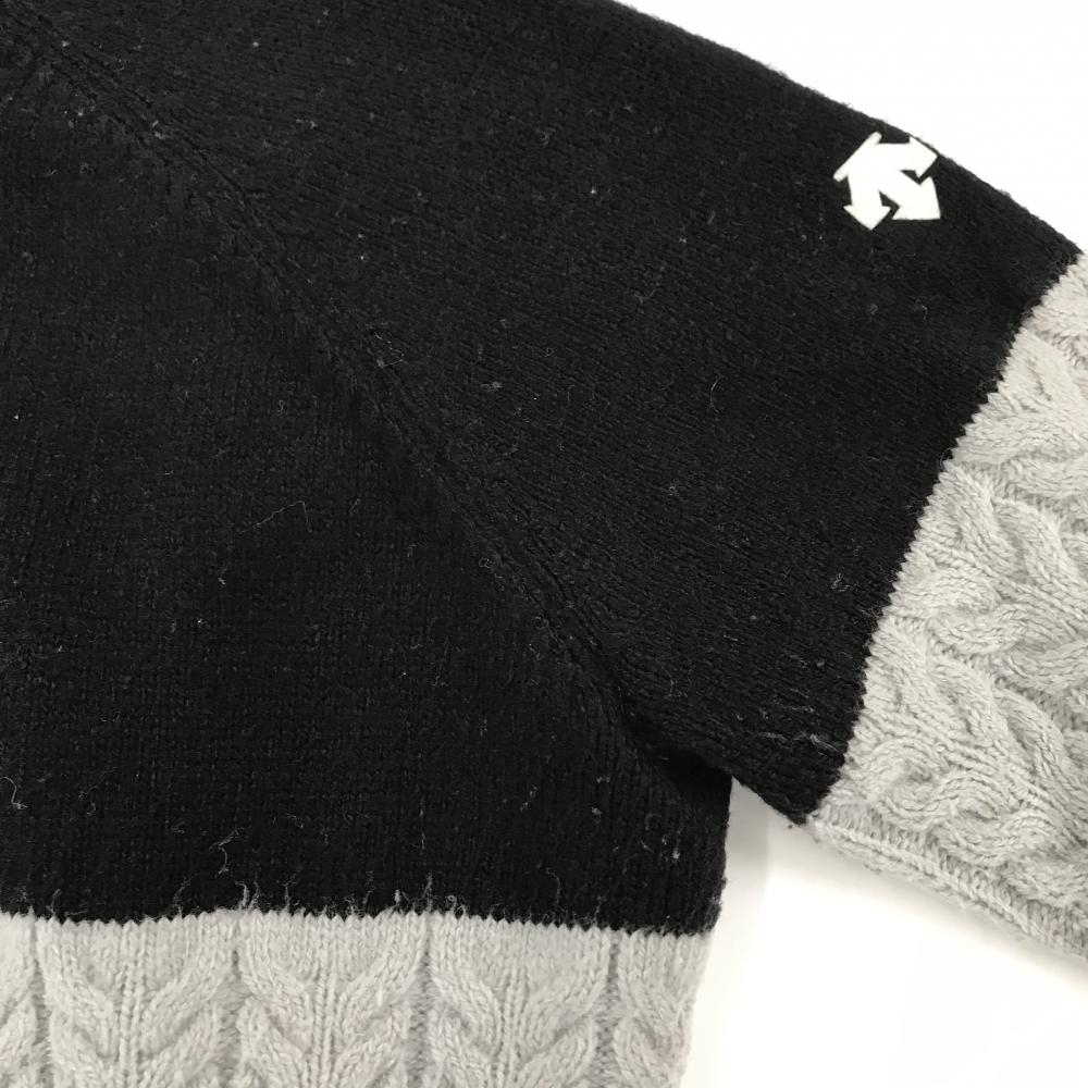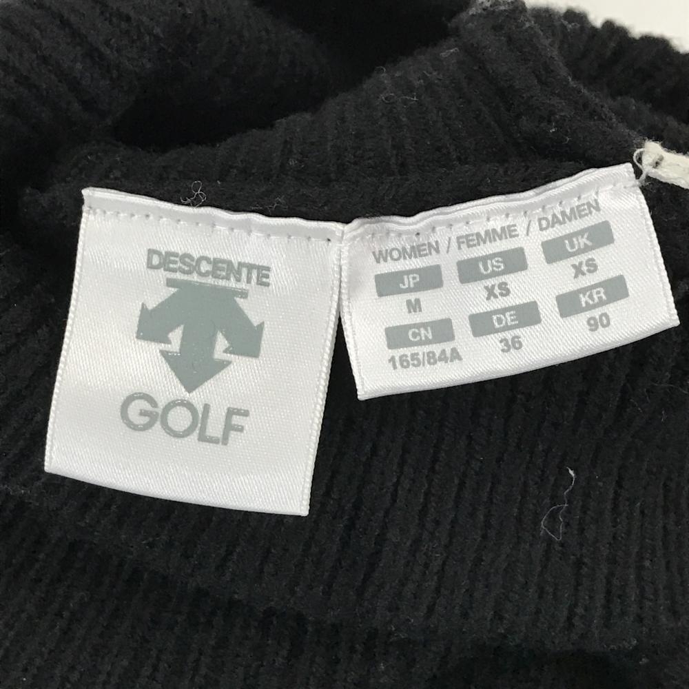 デサントゴルフ タートルネックセーター 黒×白 ケーブル編み 袖ロゴ ウール混 ニット 中田英寿 レディース M ゴルフウェア DESCENTE