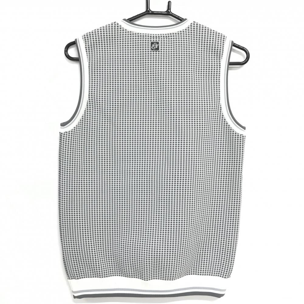 【超美品】ゾーイ ニットベスト グレー×アイボリー 格子柄 ロゴ レディース L ゴルフウェア ZOY