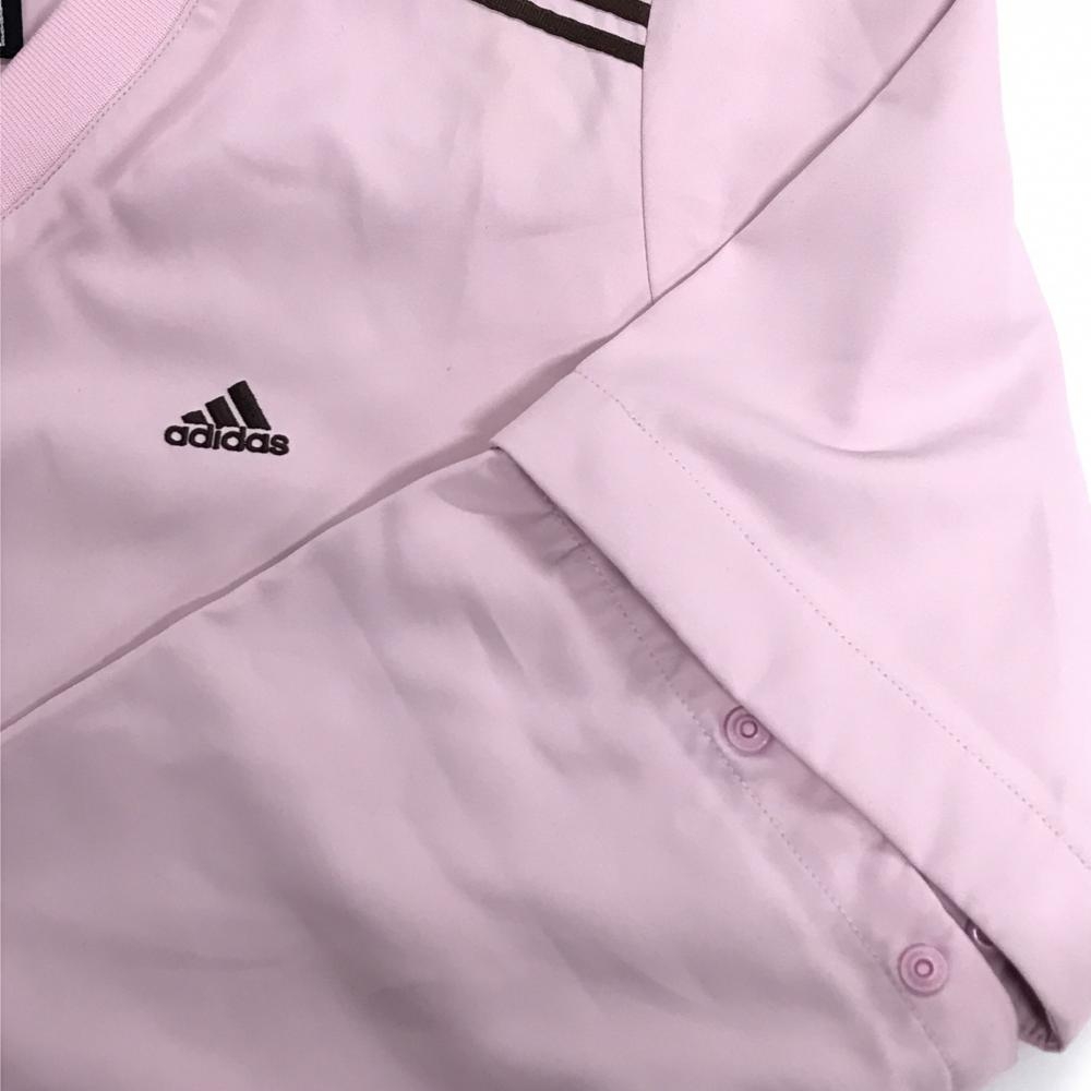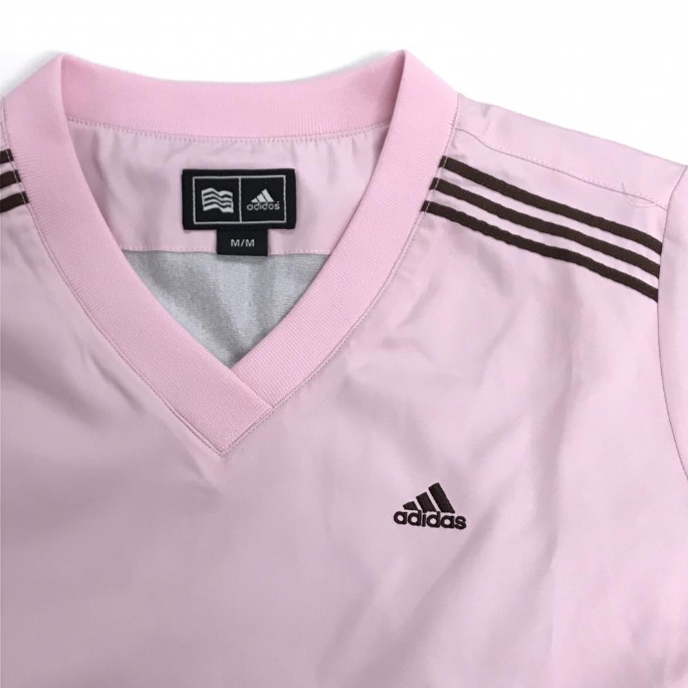 【美品】アディダス 2WAYスニード ピンク×ブラウン 蓄熱裏地 袖着脱可 Vネック レディース M/M ゴルフウェア adidas