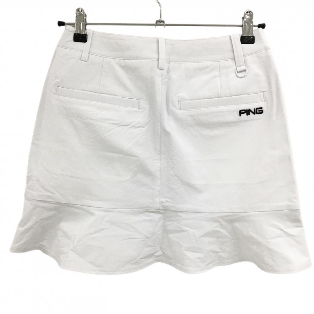 【美品】ピン スカート 白×黒 ロゴ刺しゅう ストレッチ レディース S ゴルフウェア PING