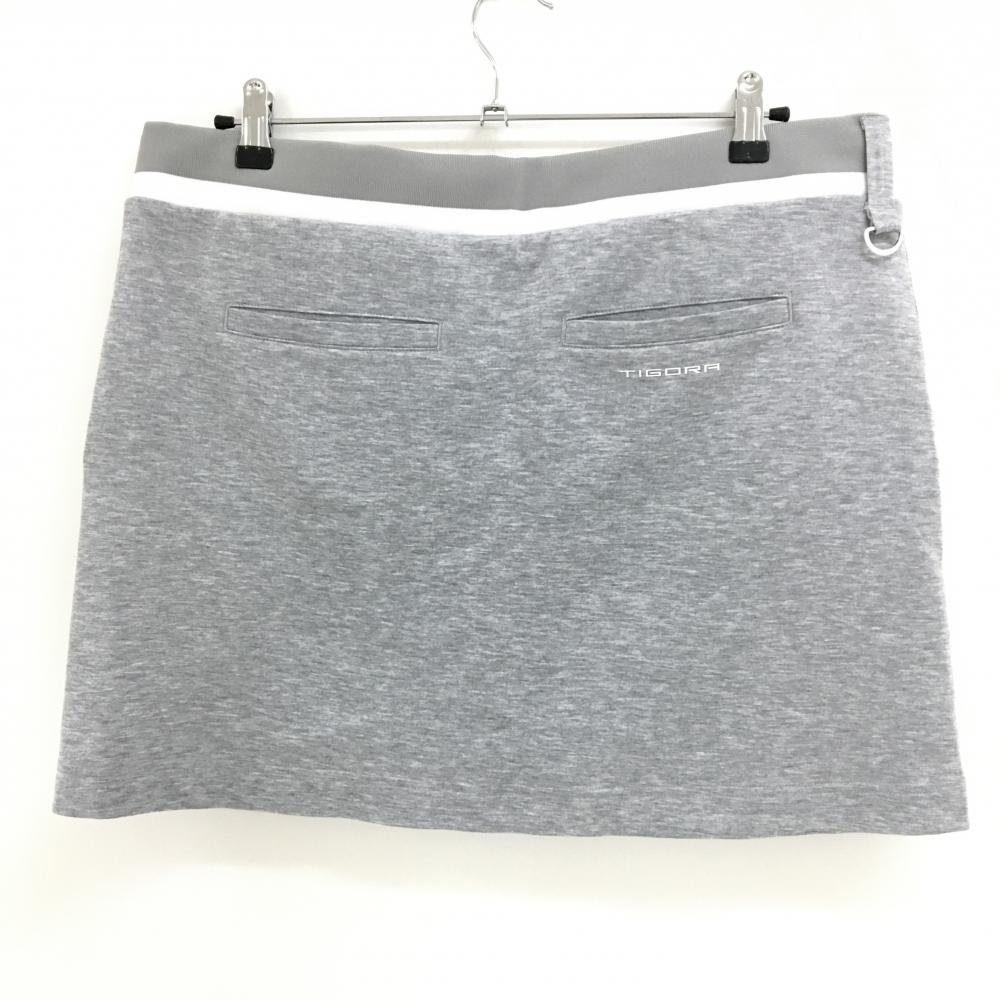 【超美品】ティゴラ スウェットスカート 杢グレー×白 ストレッチ ウエストゴム&調節紐 レディース 2XL ゴルフウェア TIGORA