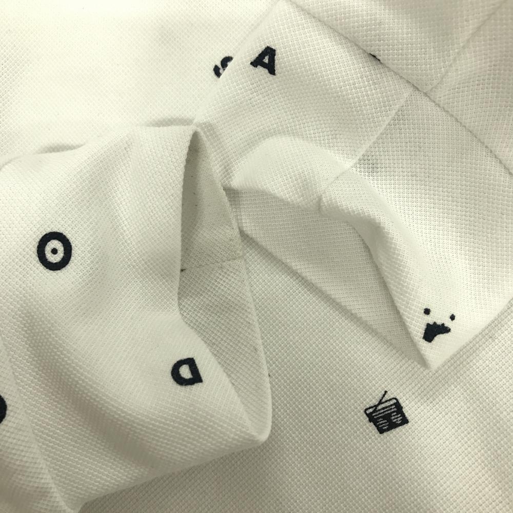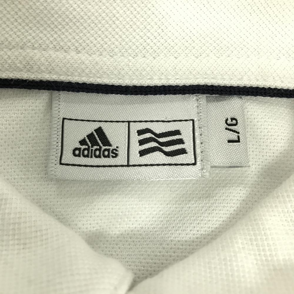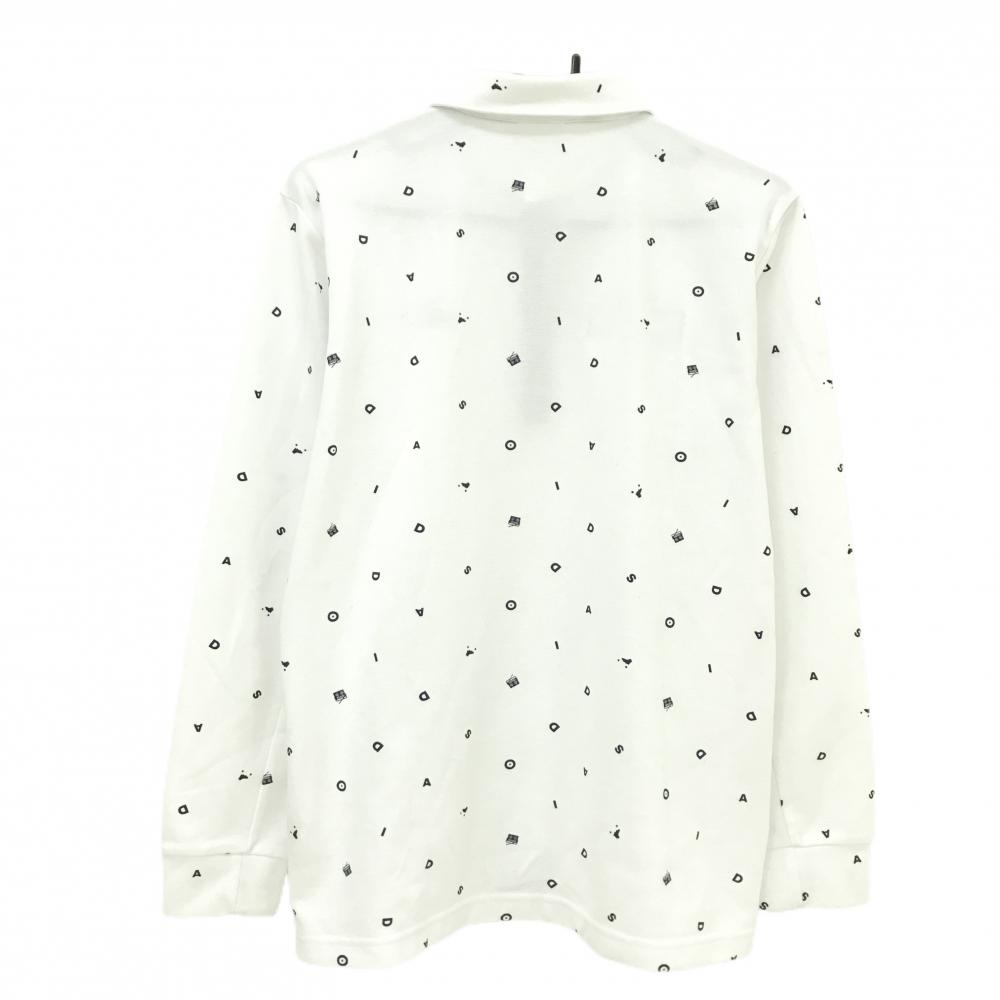 アディダス 長袖ポロシャツ 白×ネイビー 総柄 ロゴ刺しゅう メンズ L/G ゴルフウェア adidas
