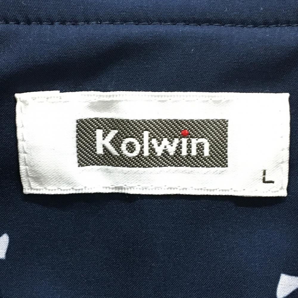 【超美品】コルウィン 2WAYジャケット ネイビー×白 総柄 袖着脱可 胸ロゴ刺しゅう レディース L ゴルフウェア Kolwin