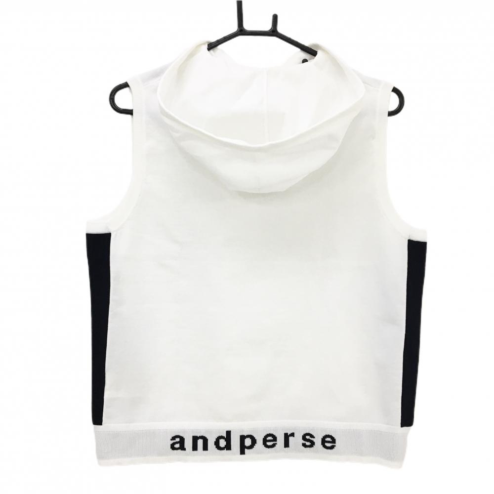 アンパスィ フード付ニットベスト 白×ネイビー ストレッチ レディース LL ゴルフウェア and per se