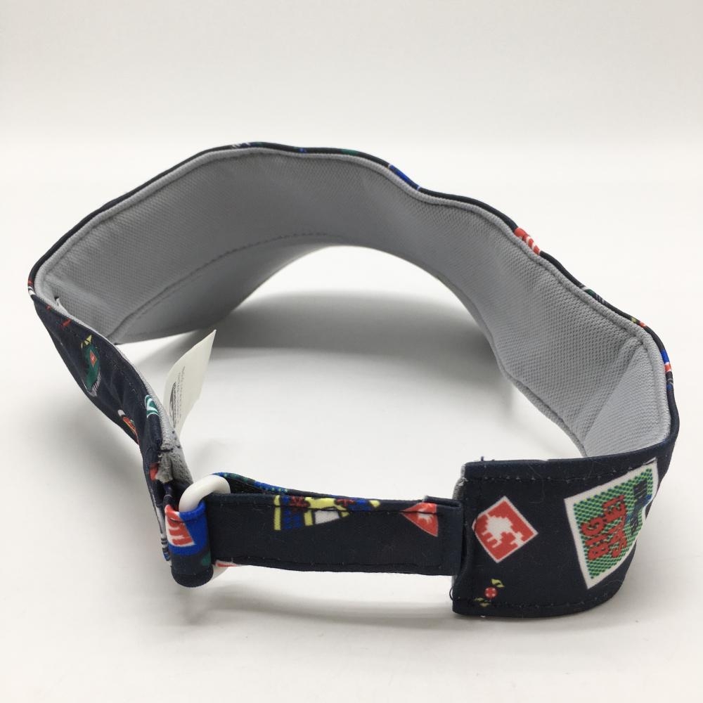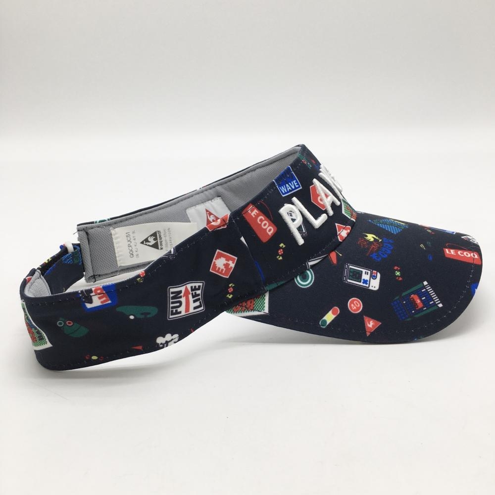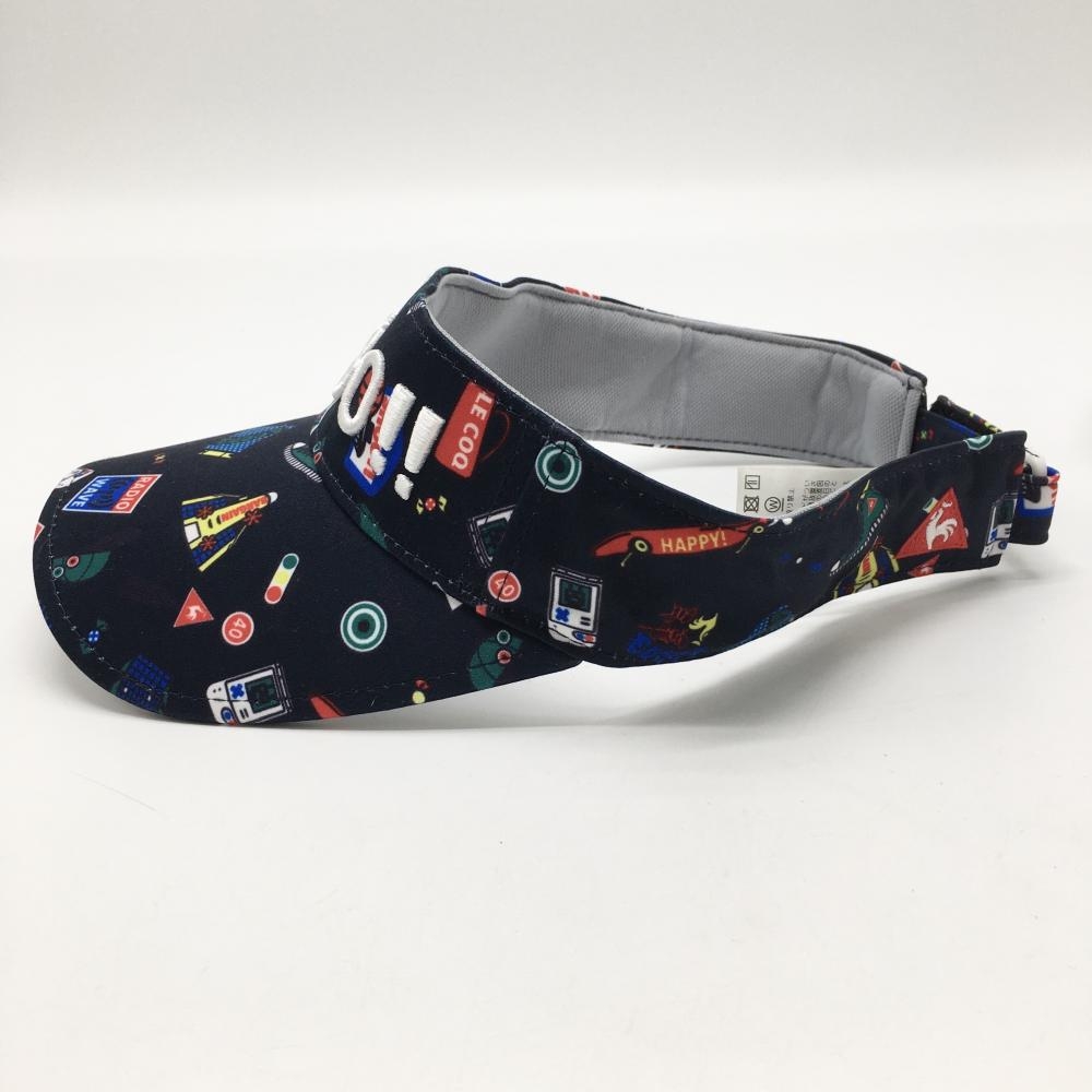 【超美品】ルコック サンバイザー ネイビー×マルチカラー 総柄 立体刺しゅう F(55-57cm) ゴルフウェア le coq sportif