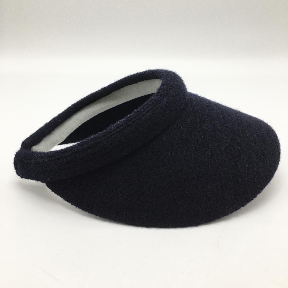 【美品】マスターバニー つば広サンバイザー ネイビー つばロゴ ウール混 レディース FR ゴルフウェア MASTER BUNNY EDITION