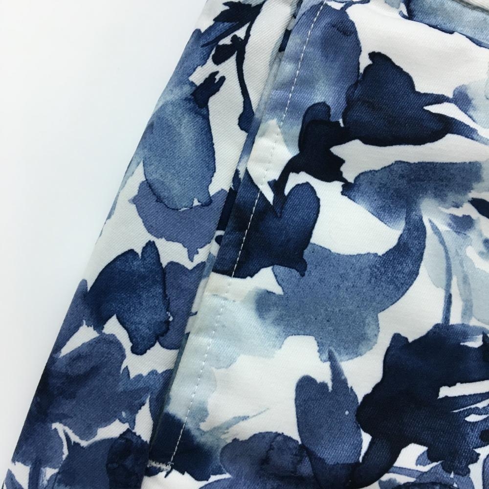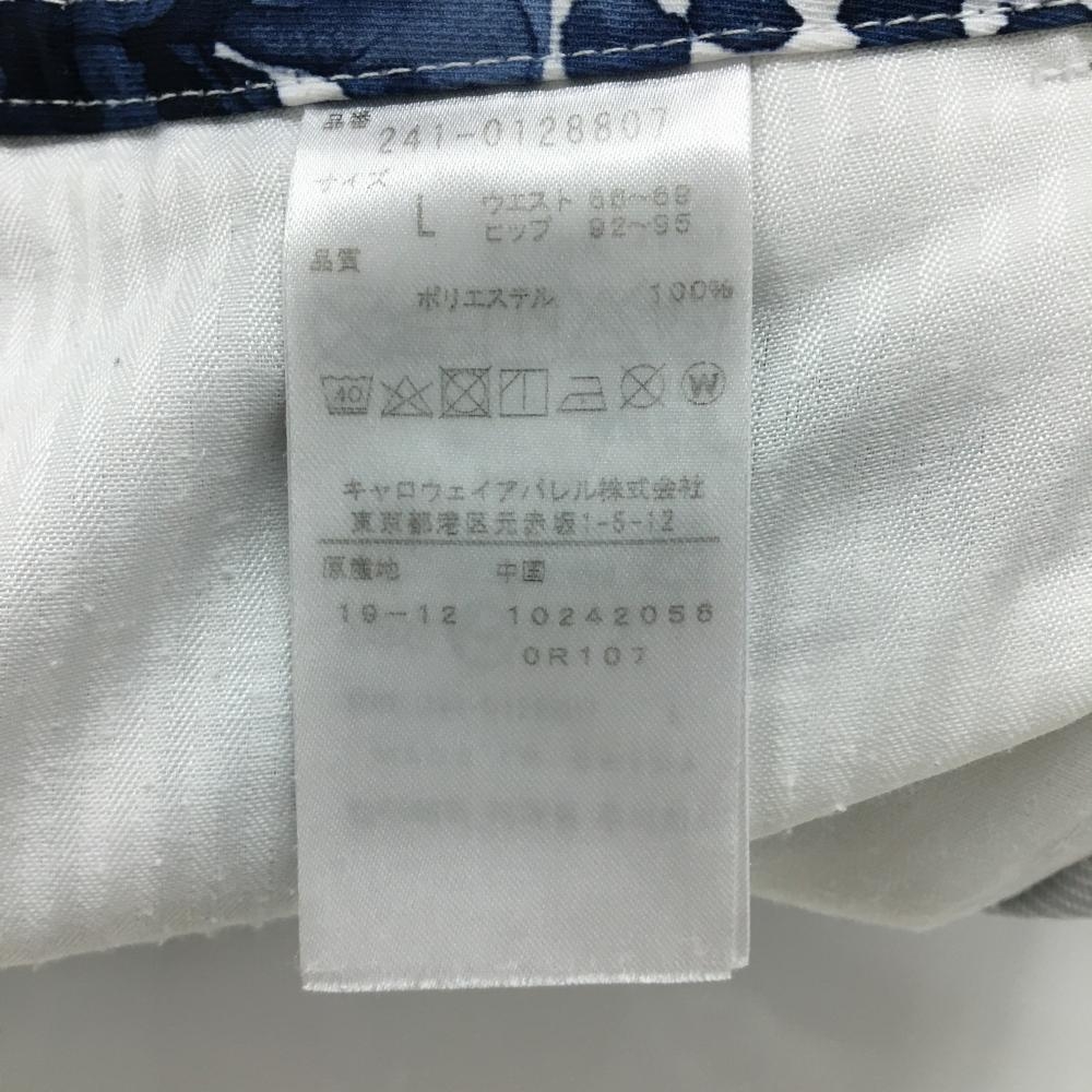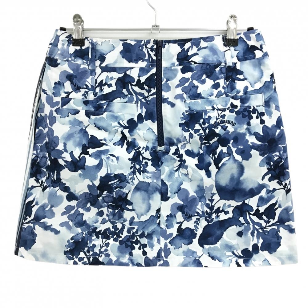 【美品】キャロウェイ スカート 白×ネイビー 花柄 一部ストライプ 後ろジップ レディース L ゴルフウェア Callaway
