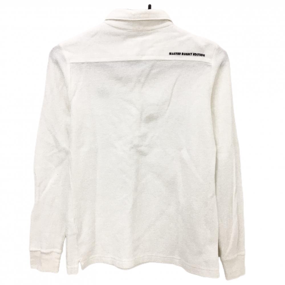 【美品】マスターバニー 長袖ポロシャツ 白系 地模様 ボタンダウン 胸ロゴ レディース 1(M) ゴルフウェア MASTER BUNNY EDITION