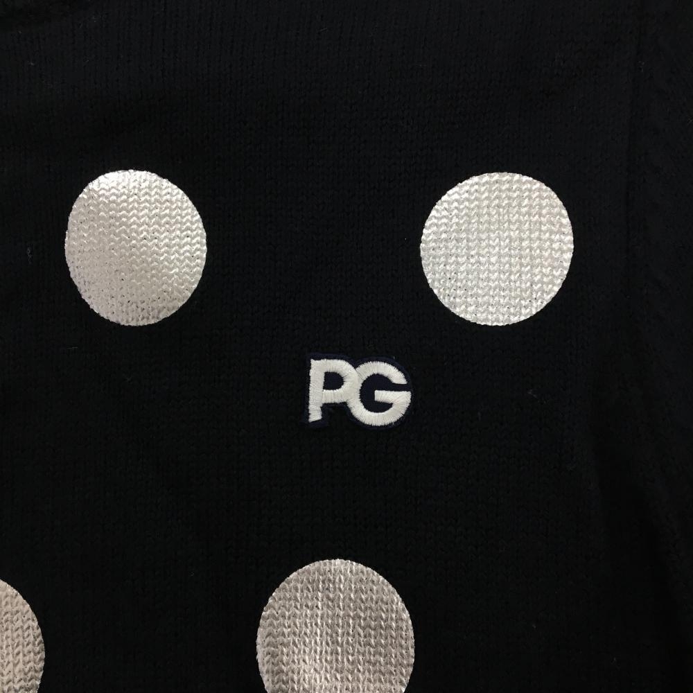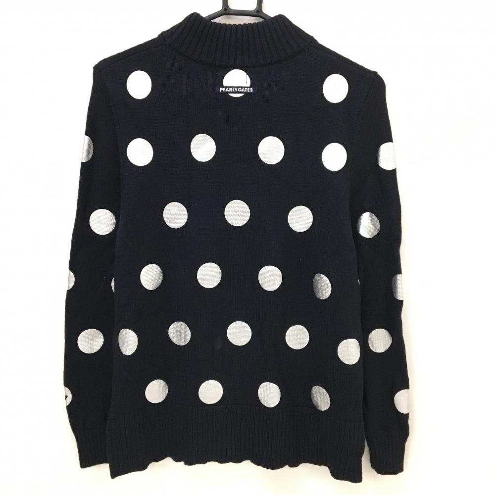 【美品】パーリーゲイツ ハイネックセーター ネイビー×シルバー ドット ウール100% ニット レディース 0(S) ゴルフウェア PEARLY GATES