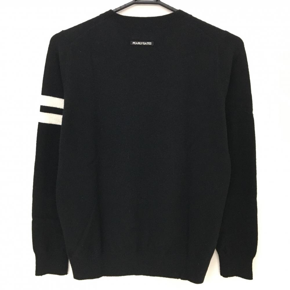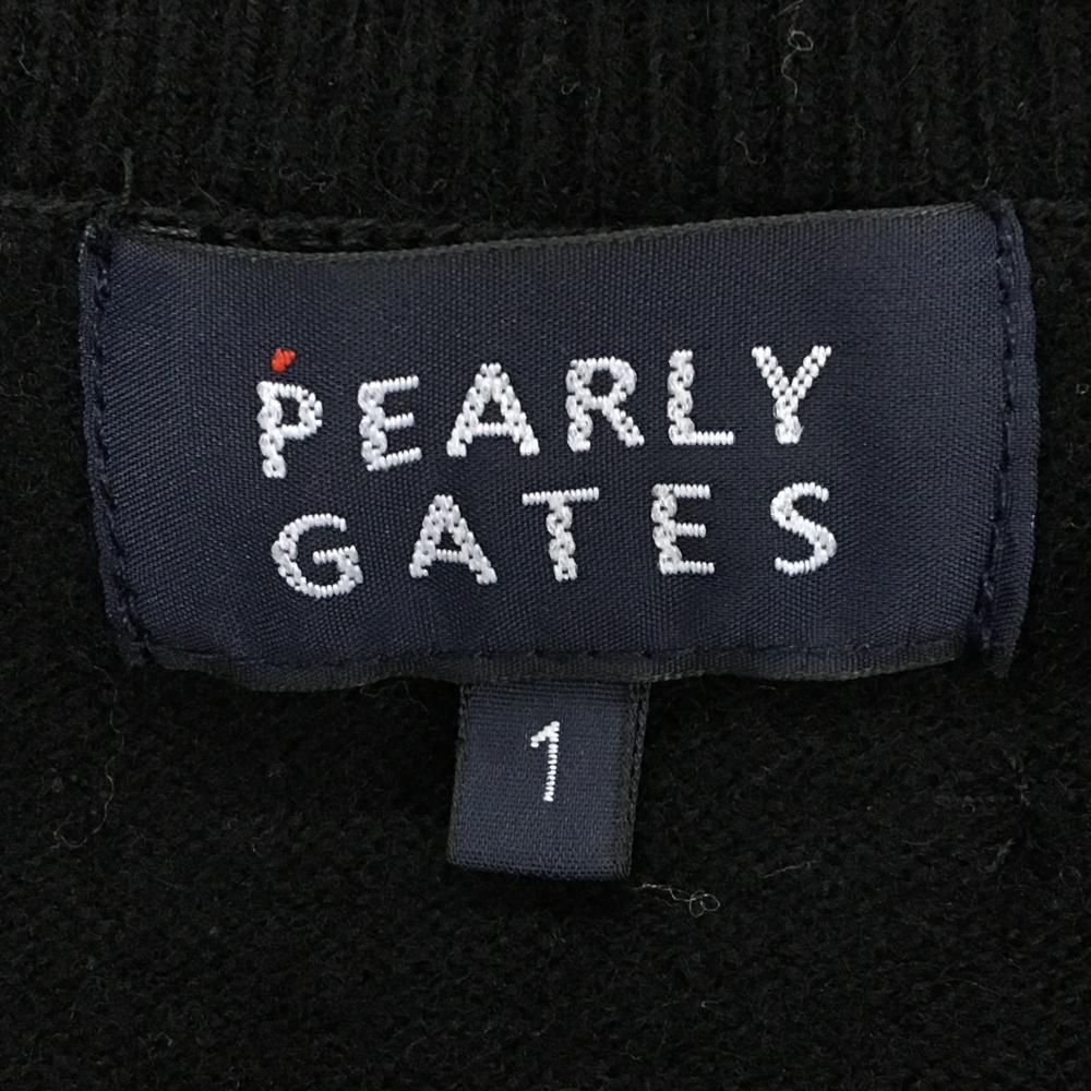 【美品】パーリーゲイツ セーター 黒×白 フロントロゴ カシミヤ混 ニット レディース 1(M) ゴルフウェア PEARLY GATES