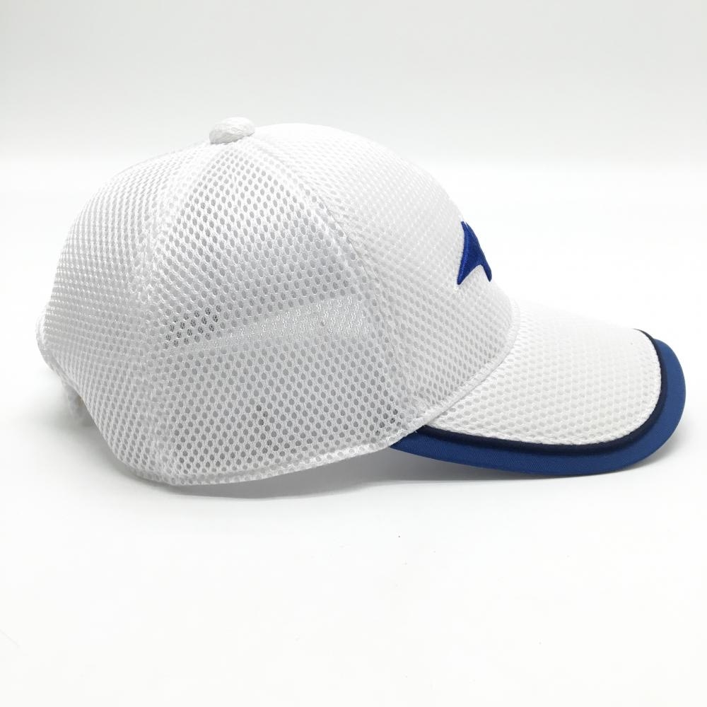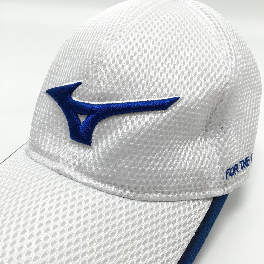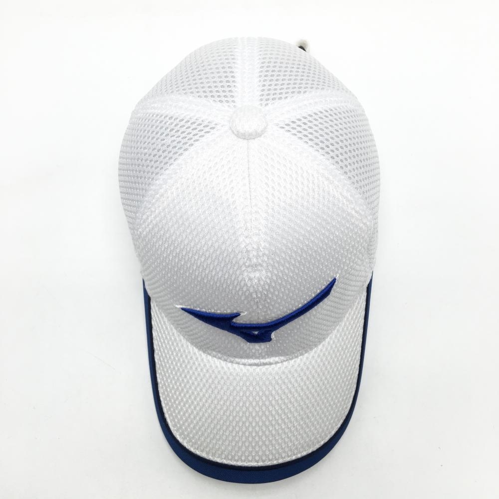 【超美品】ミズノゴルフ メッシュキャップ 白×ブルー 立体ロゴ 型崩れ、つば裏汚れ F(56~60cm) ゴルフウェア MIZUNO