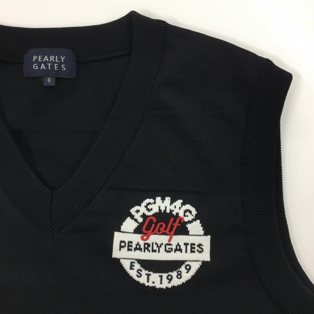 【超美品】パーリーゲイツ ニットベスト 黒 Vネック 胸元ロゴ メンズ XL ゴルフウェア PEARLY GATES