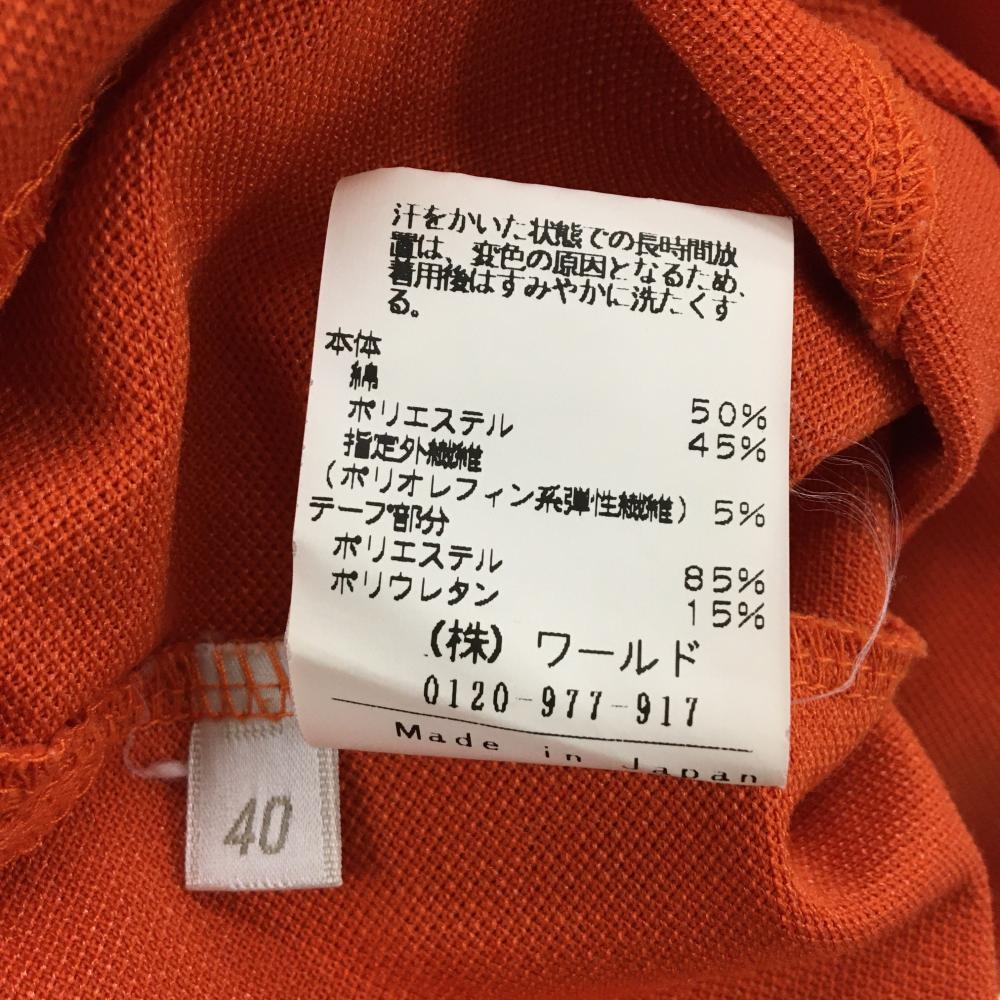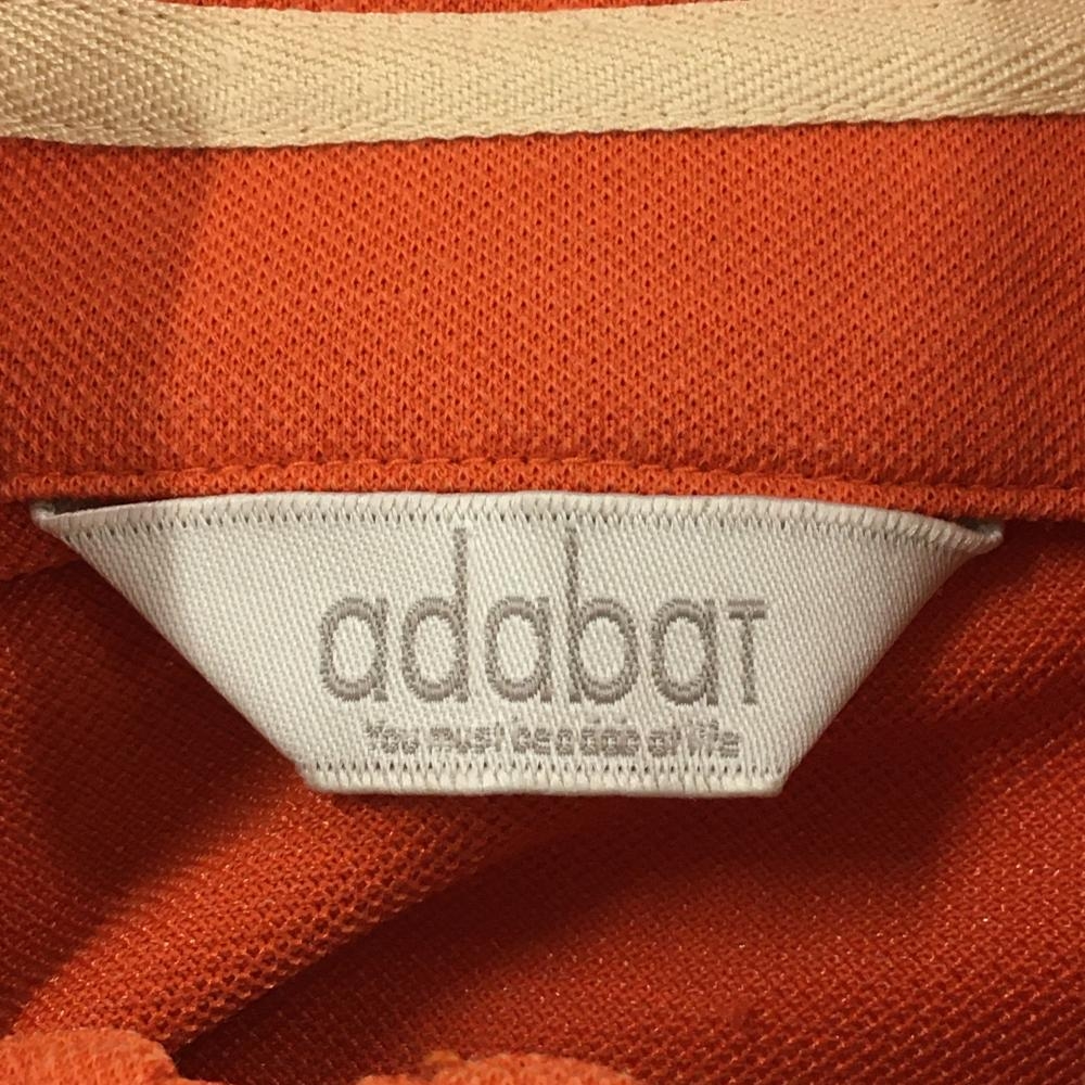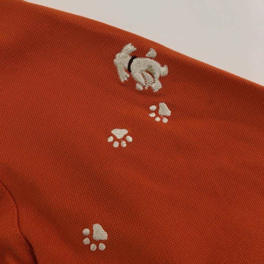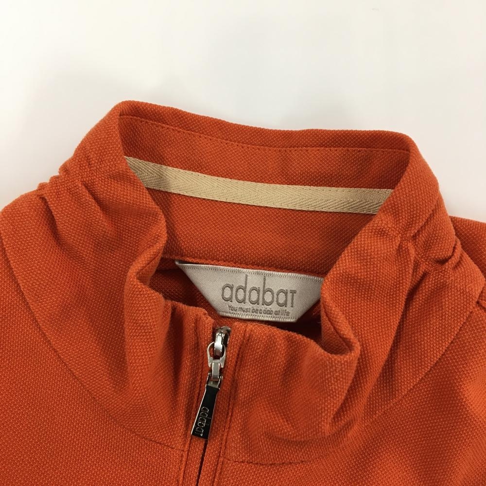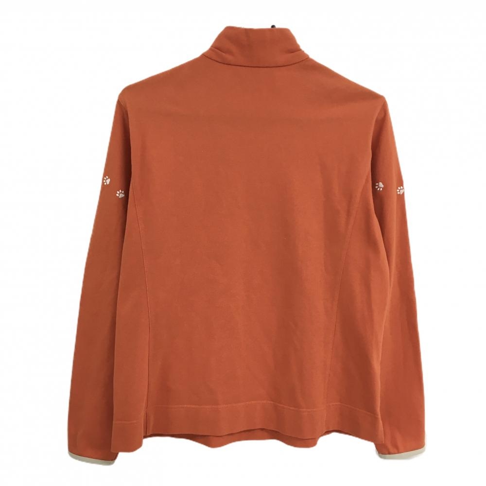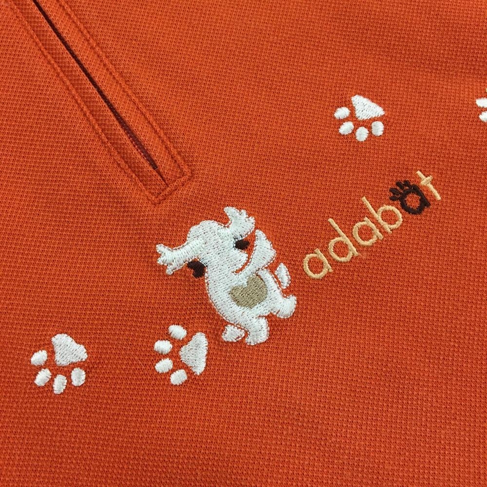 【美品】アダバット 長袖ハイネックシャツ オレンジ×白 ドッグ刺しゅう ハーフジップ レディース 40(L) ゴルフウェア adabat
