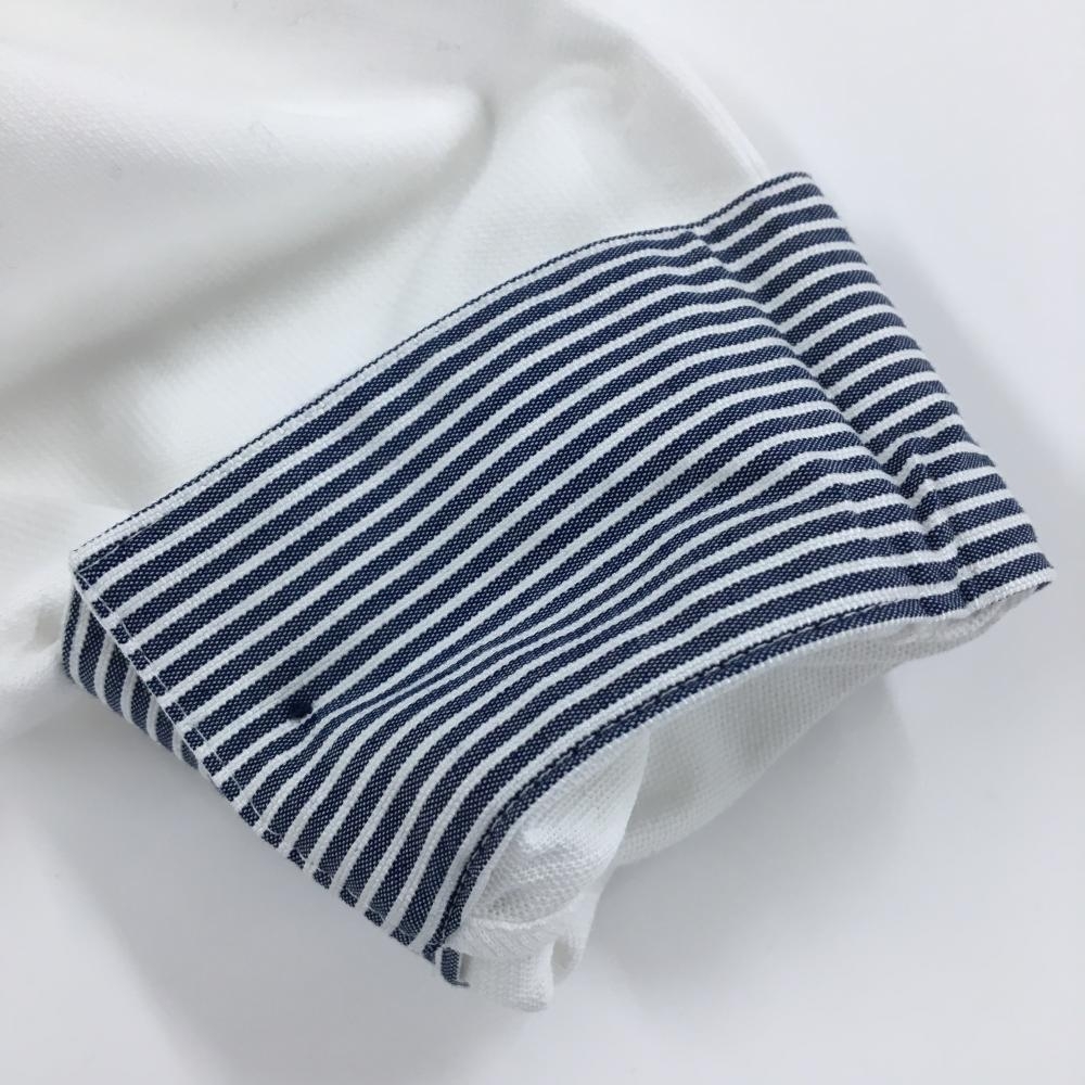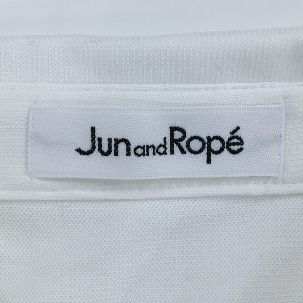 【超美品】ジュンアンドロペ 長袖ポロシャツ 白 胸ワッペン 袖口裏ボーダー レディース L ゴルフウェア JUN&ROPE