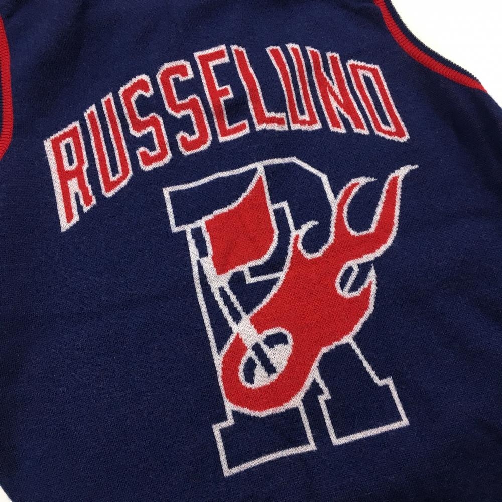 【美品】ラッセルノ ニットベスト ネイビー×レッド×白 ウール100% メンズ 5(L) ゴルフウェア RUSSELUNO